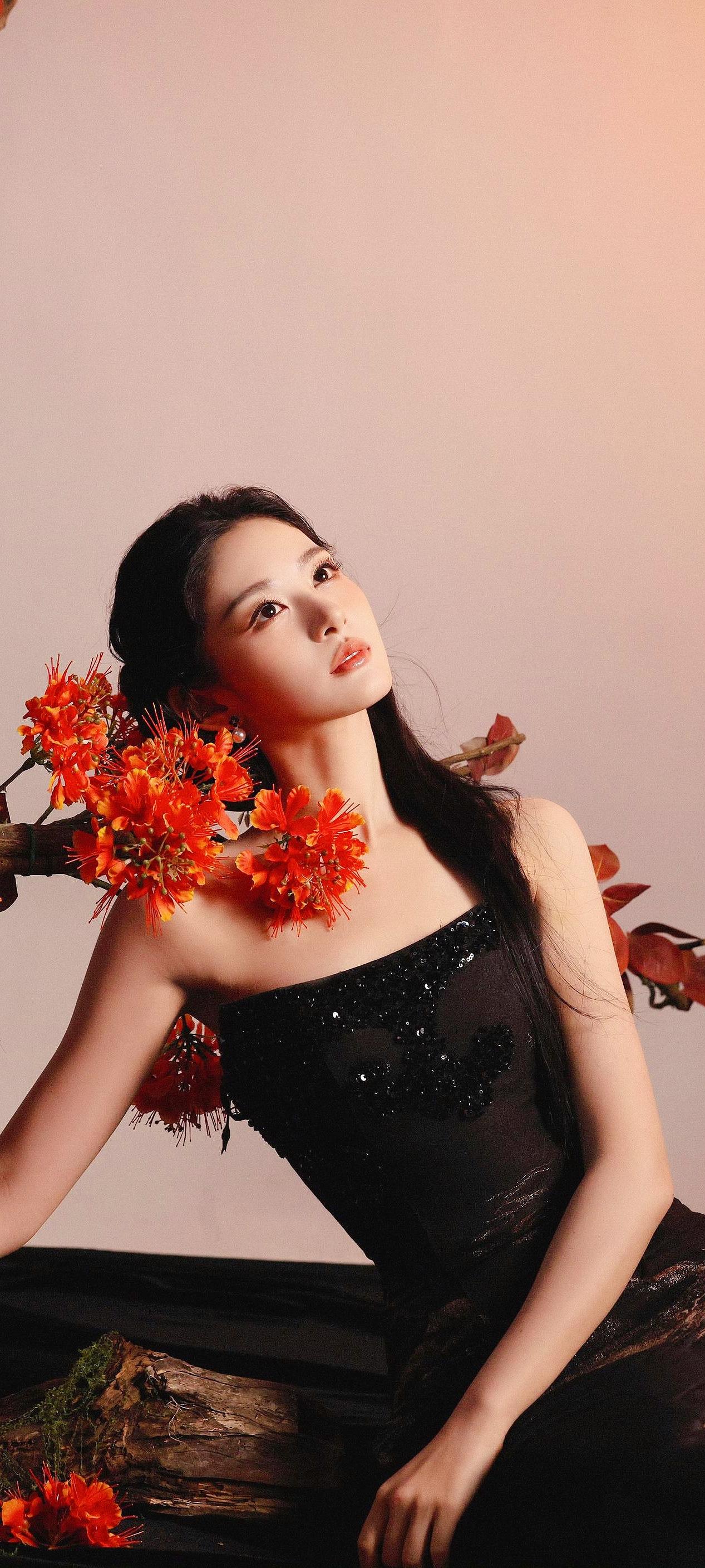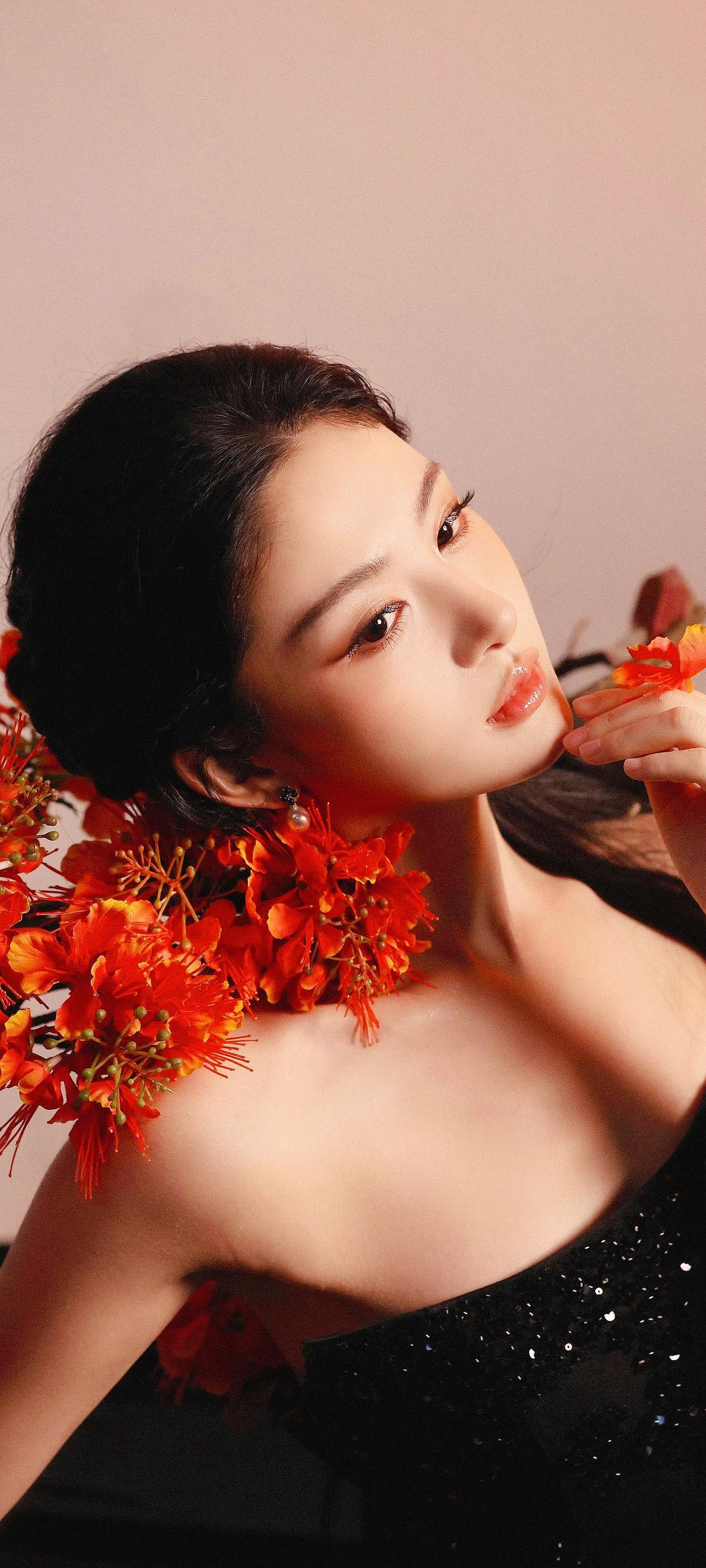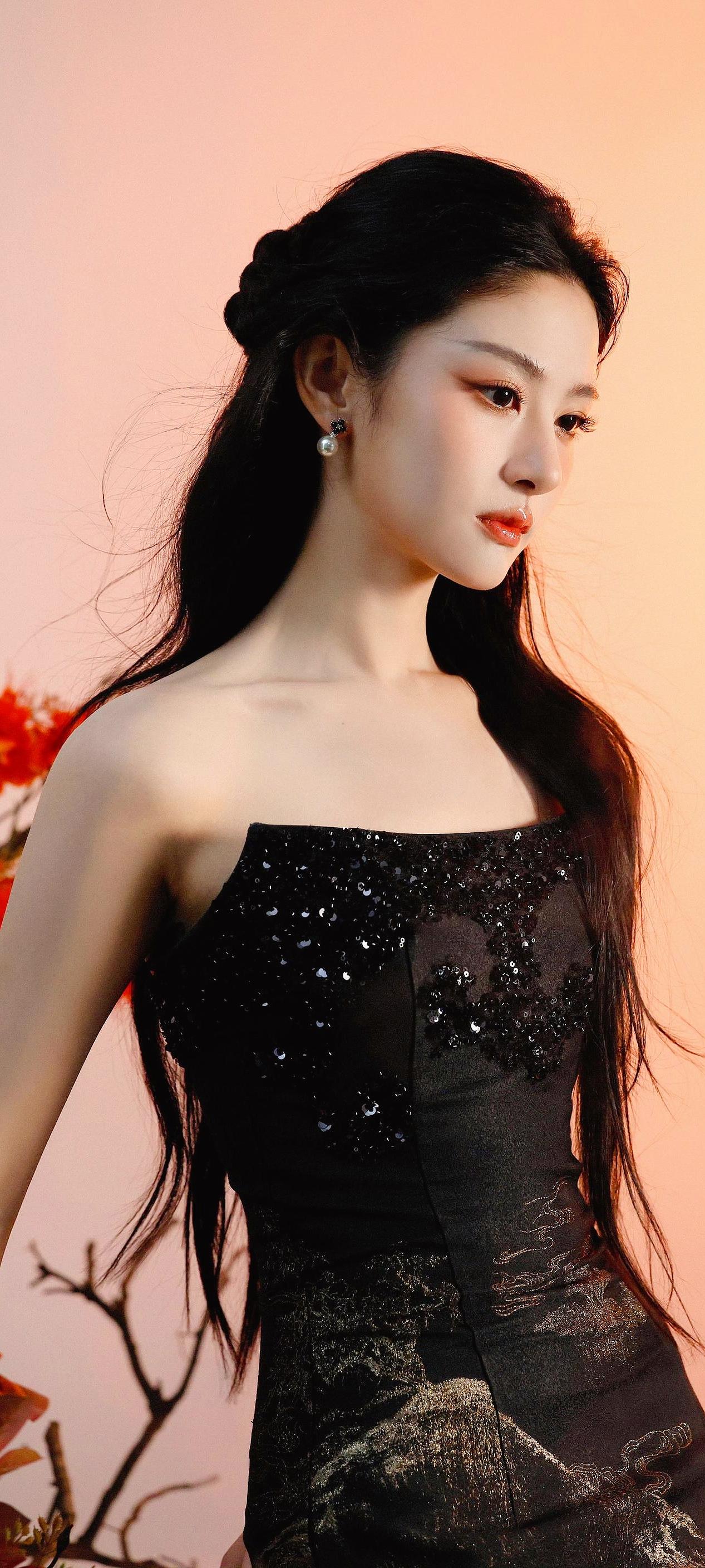 《黛色春妍》 黛色云丝覆雪肩,星芒缀缕曳金烟。 凝眸不语春风里,半是清寒半是妍。