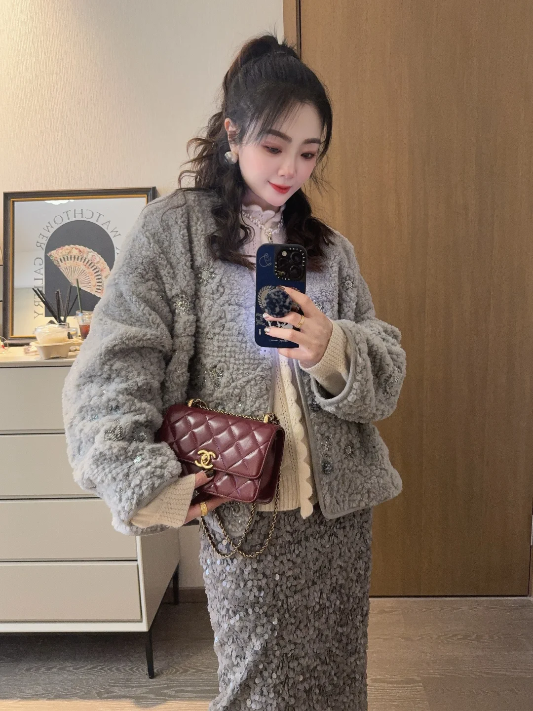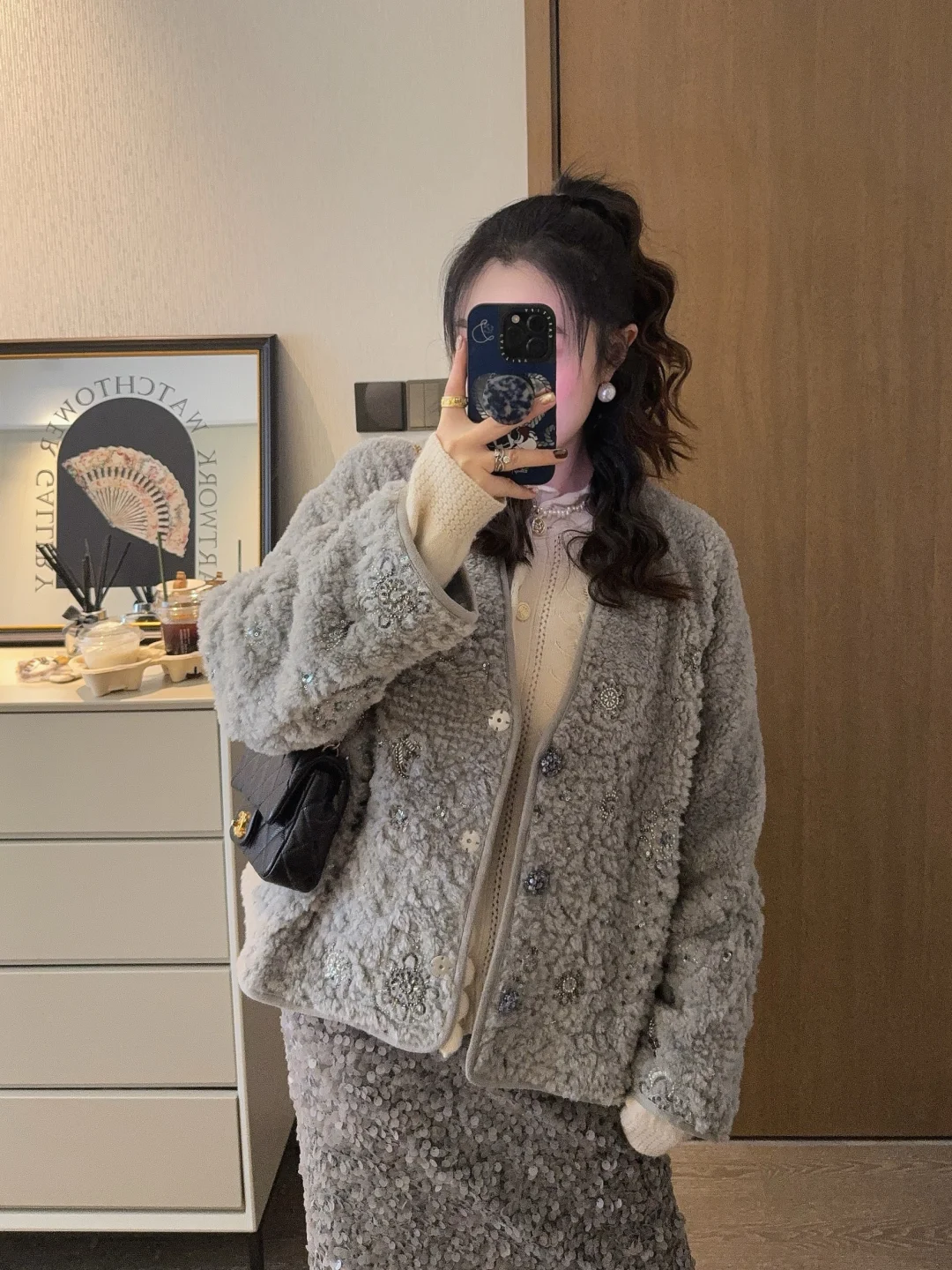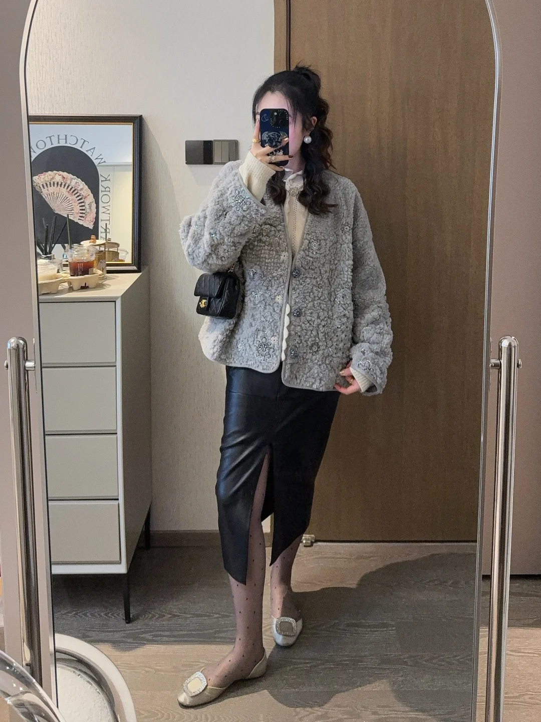 升了点温的周末,已经忍不住穿漂亮裙子去约会了~ 入了一件blingbling的厚外套,all grey真的很温柔很高级!带着我家加班狂魔去约饭了~ 姐妹们周末快乐鸭🎈