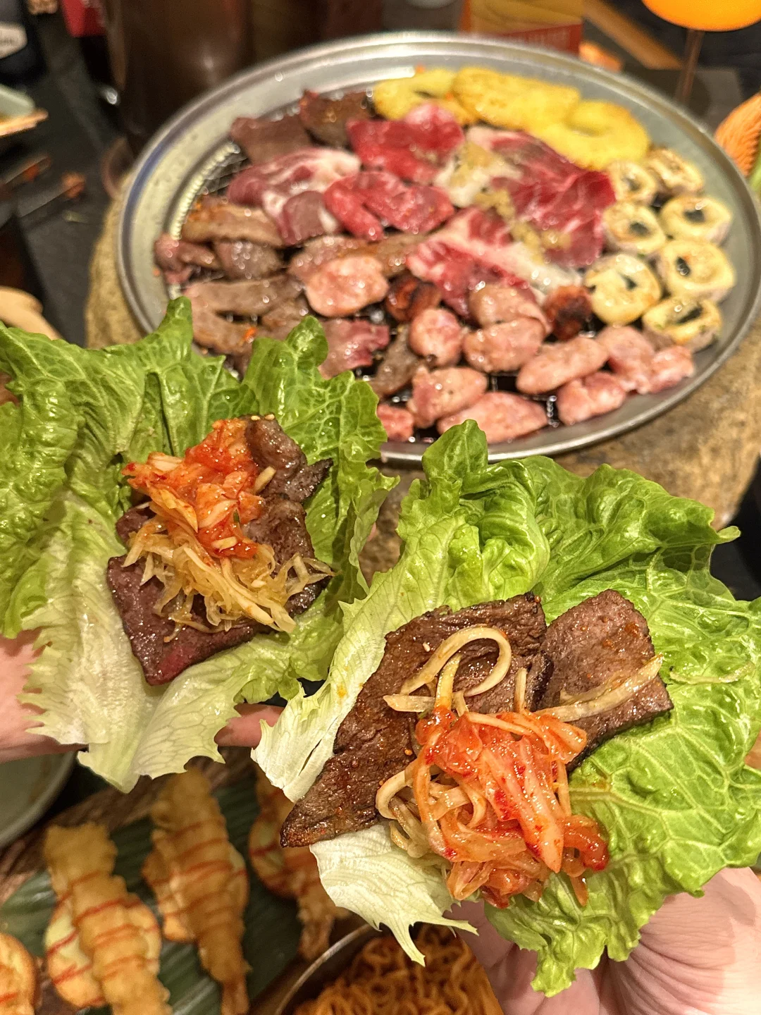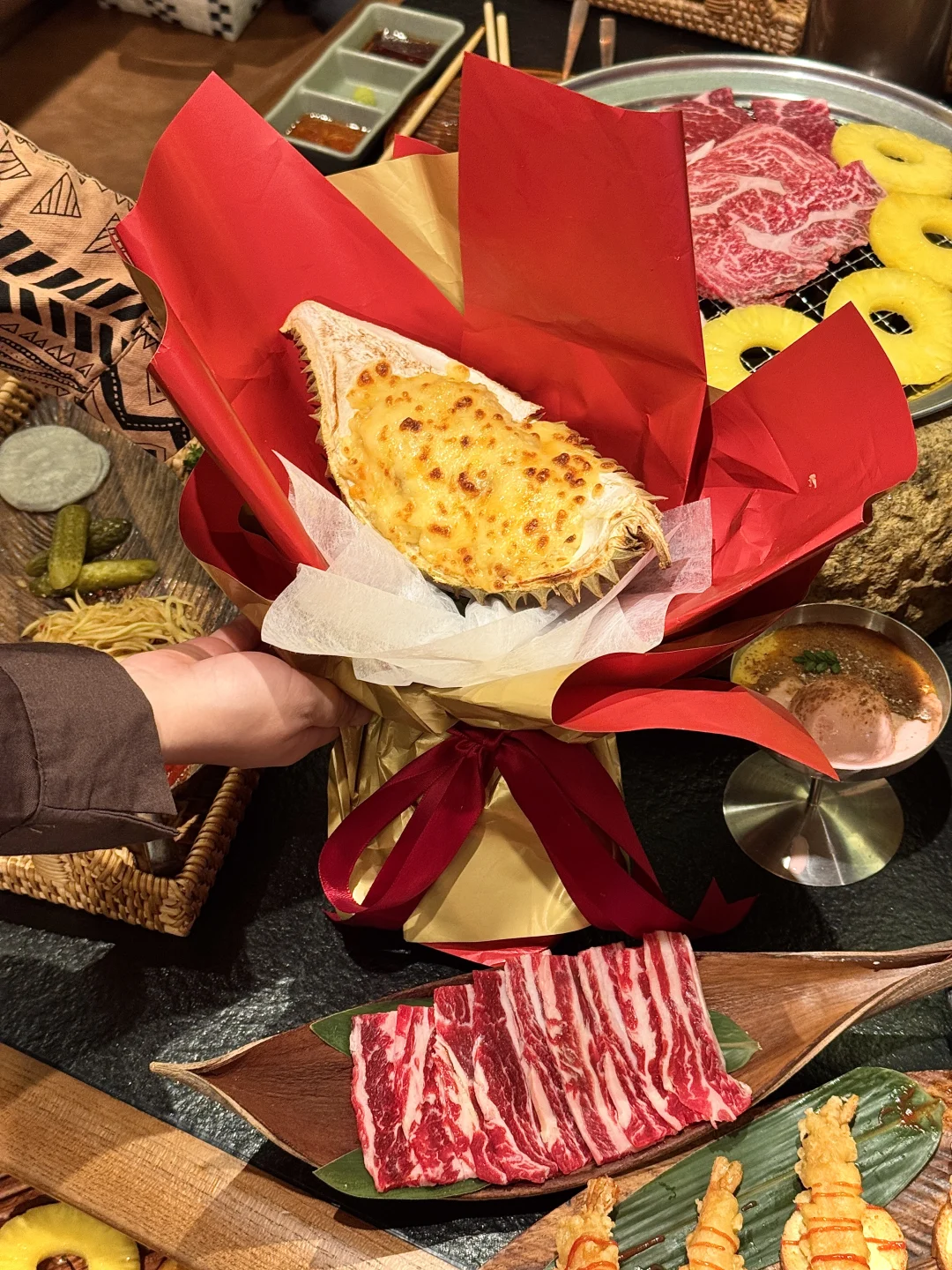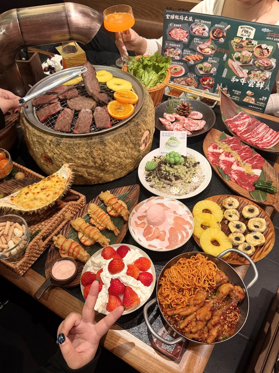 和闺蜜早早种草的一家烤肉店,叫(牛焱喜)!! 亲测好吃!!真的惊艳s了!!全程都有服务员帮忙看,服务堪比海某捞!!🥹🥹好nice,不🔥真的没天理! 牛肉🥩巨巨巨嫩会爆汁!雪花肥瘦相间,烤出来一点都不腻,搭配生菜+辣椒粉真的好吃哭!!鳗鱼口感Q弹新鲜好好吃!和牛黑松露松茸饭🍚想无限续吃!还有各种饮品🍸水蜜桃&草莓&车厘子雪冰🧊谁懂🥹🥹…