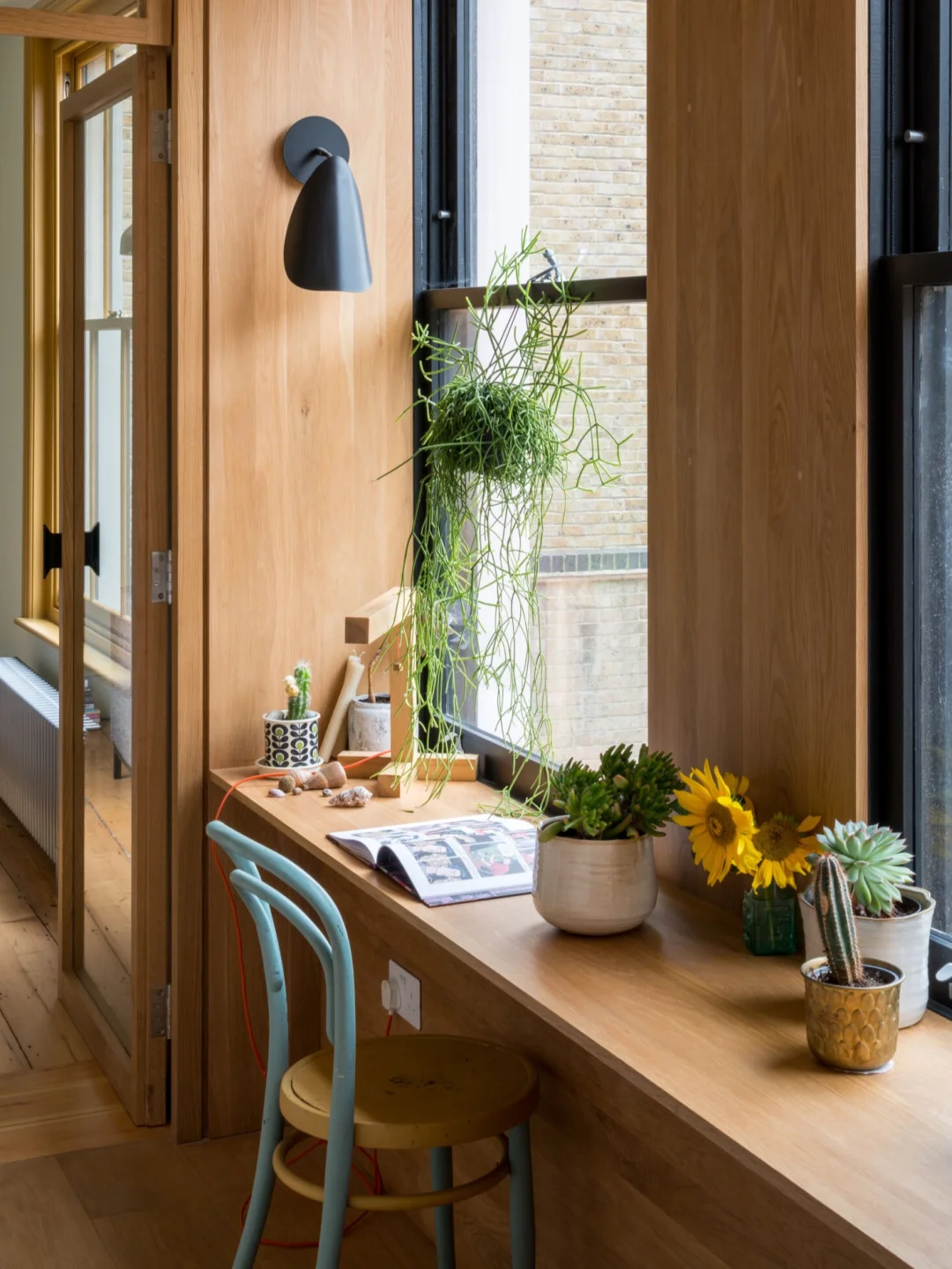 最近看了很多利用窗前空间做的设计,很有意思 比如把窗台加宽,做成小书桌、咖啡角或者做窗前矮柜,延窗定制卡座 我们也给业主家这样做过(P2-3) 一方面能把无用空间利用起来,另一方面会让人觉得很有生活感 部分图片来源于Pinterest