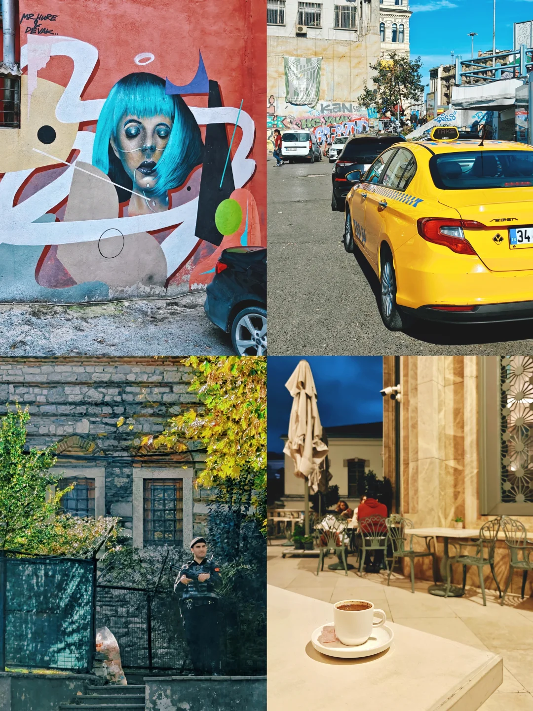 1⃣️8⃣️街头随拍:涂鸦、出租车、持qiang的守卫;土耳其咖啡,国内也喝过n次,依旧是感觉在喝泥水。