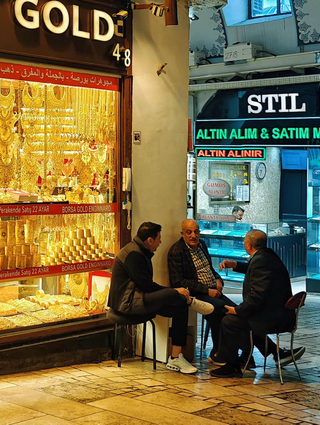 5⃣️Grand Bazaar,店铺老板们三五成群喝着土耳其红茶聊天。