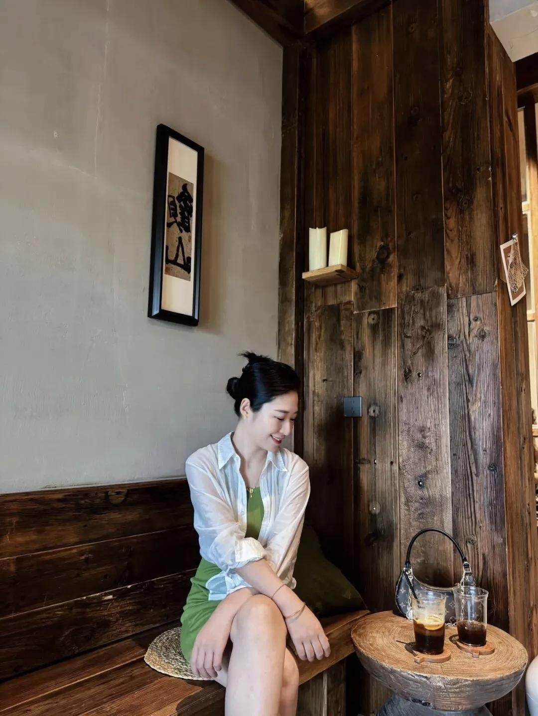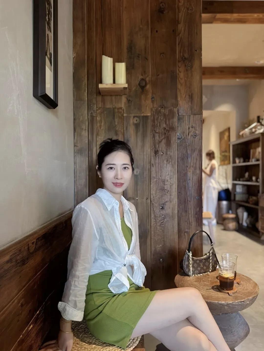 绿裙与白衬衫的清新搭配,搭配一杯咖啡,完美!🌿☕️白衬衫裙穿搭