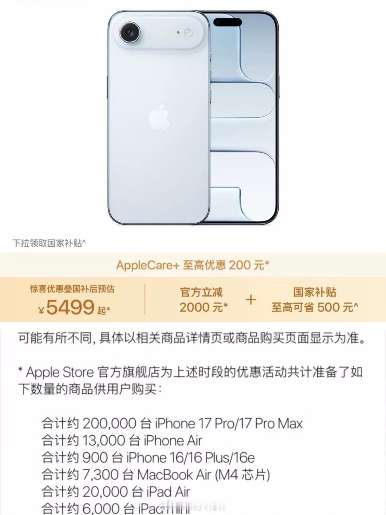 iPhoneAir暴跌2000元Air是10月份出的,现在刚好三个月,降2000还达到了国补门槛,再叠加500,等于降2500。首发7999的机子,首发买的朋友都天塌了吧。不过卖不动也正常,主打的亮点就是轻薄手感,实体卡槽也没有,单摄、短续航、单扬声器等等都是短板。受众人群还是太少了,现在降价2500你们会选择买吗