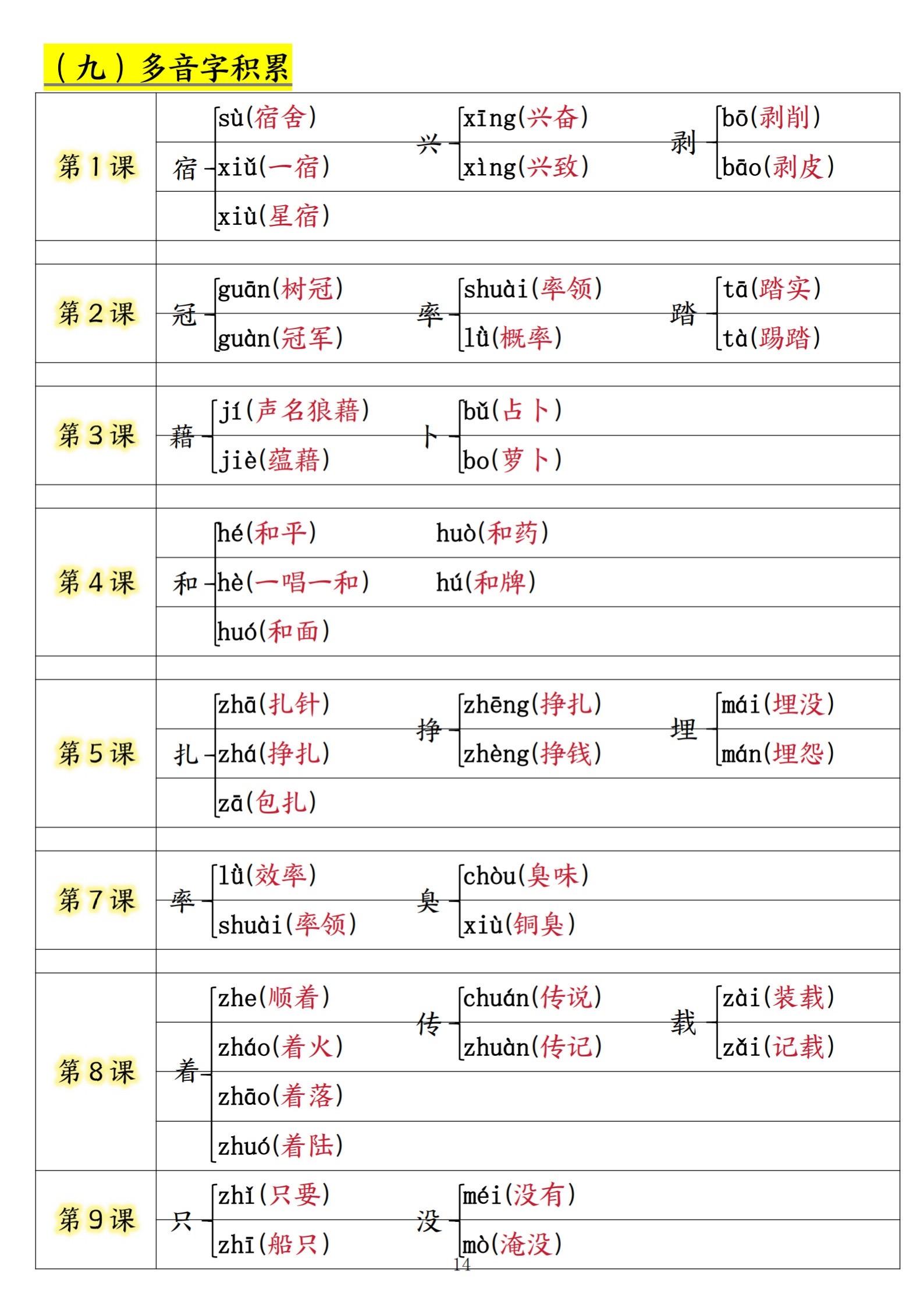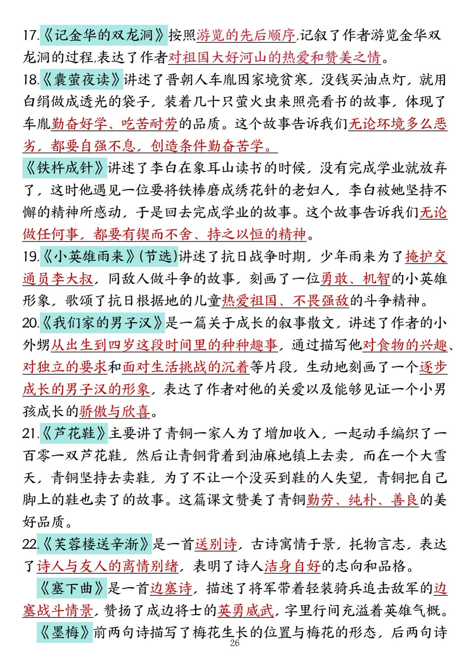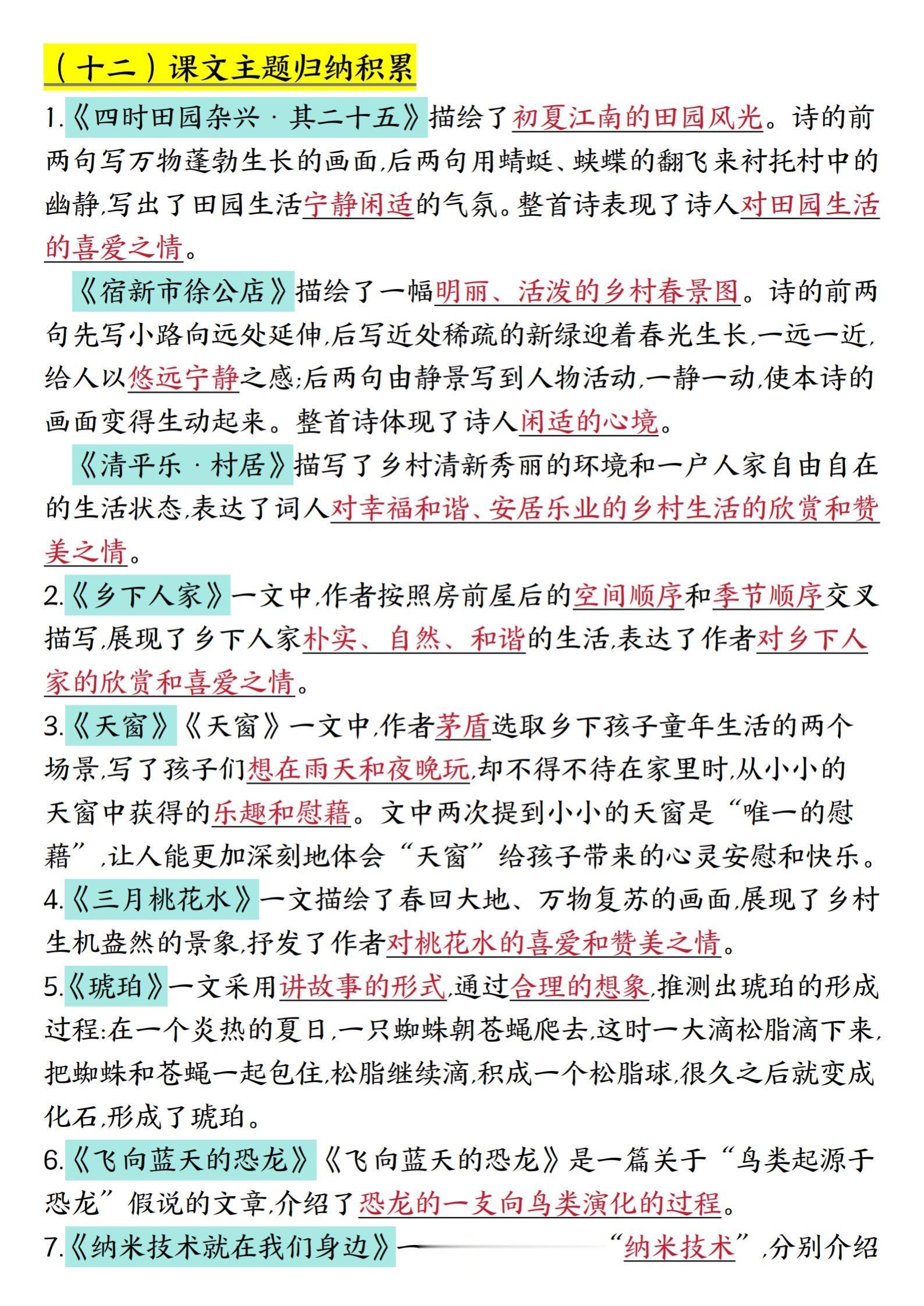 2026年春小学四年级下册语文知识汇总。 整理总结寒假预习 八方文...