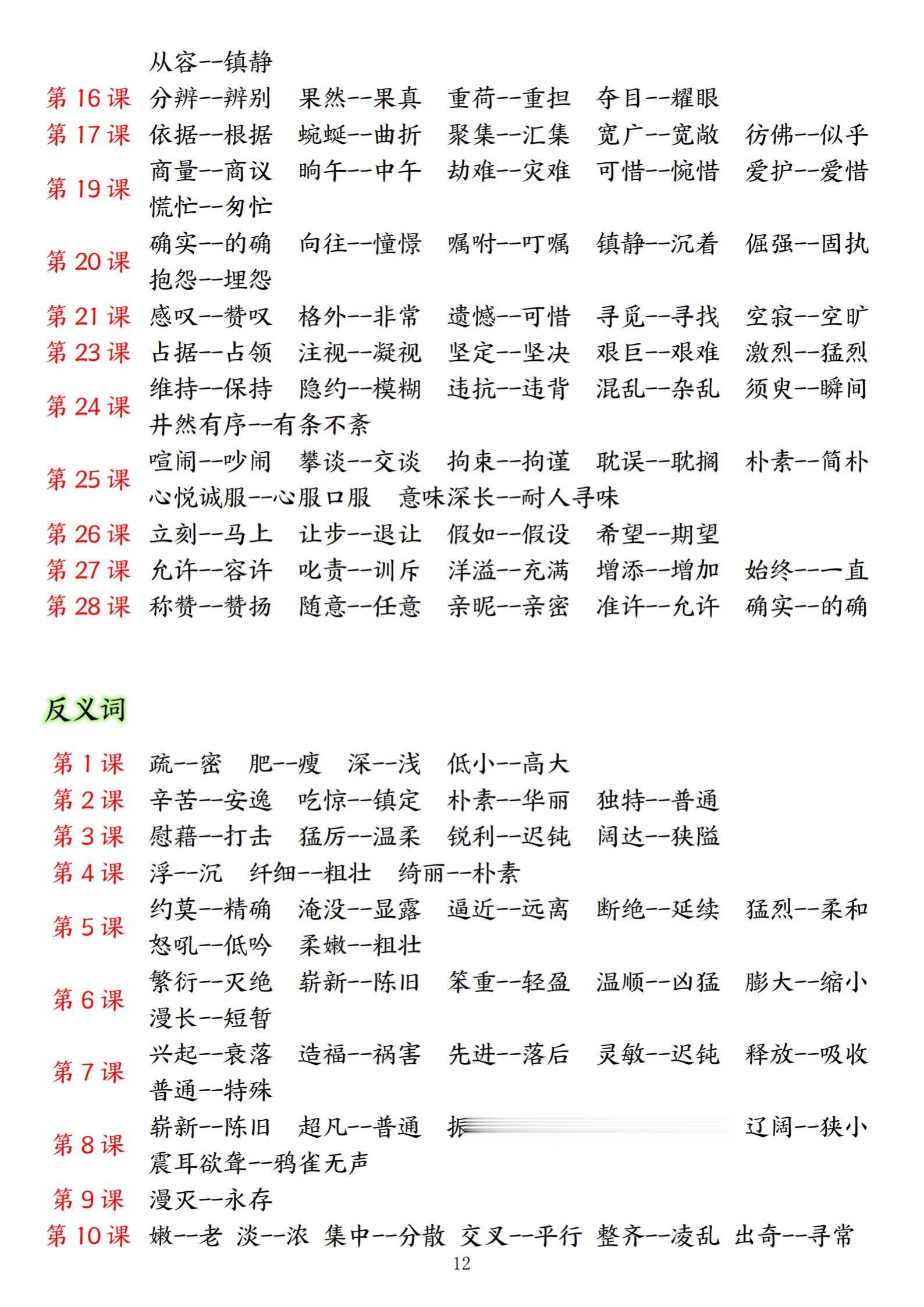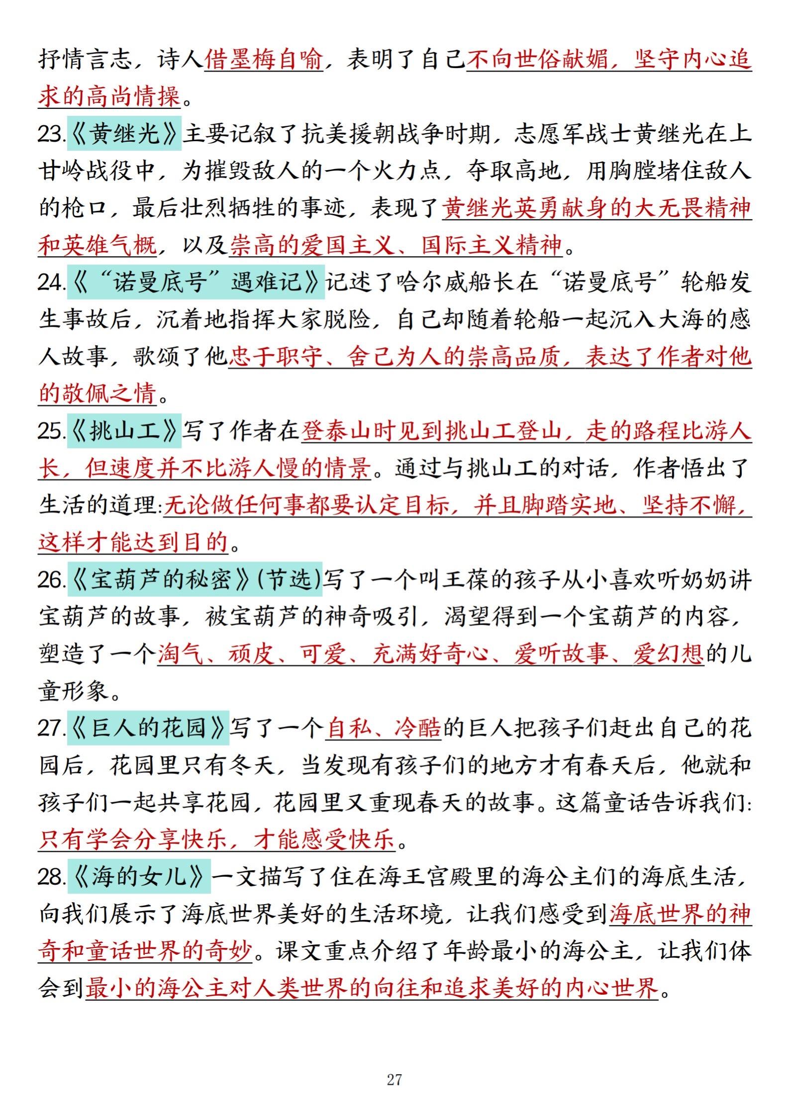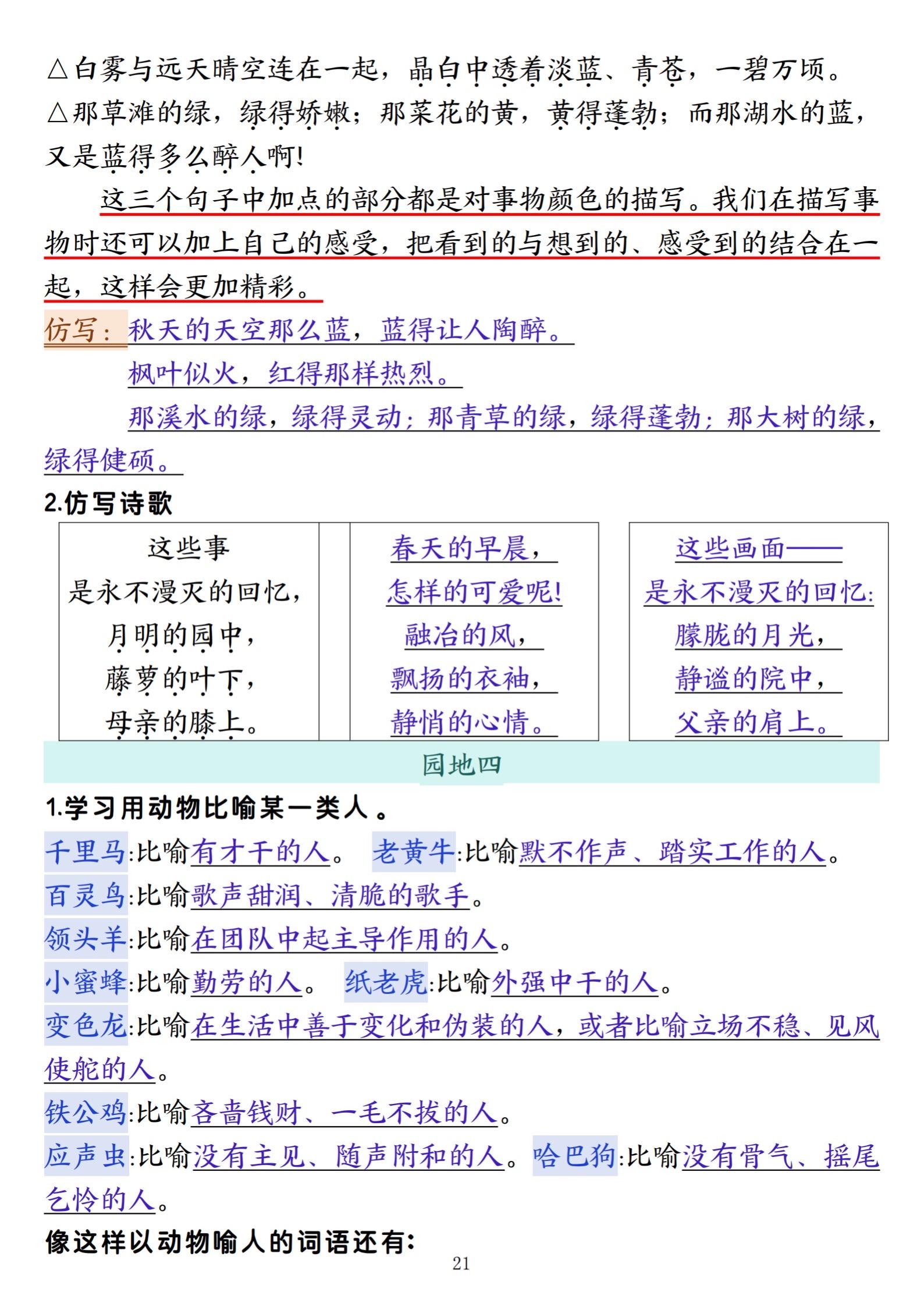 2026年春小学四年级下册语文知识汇总。 整理总结寒假预习 八方文...