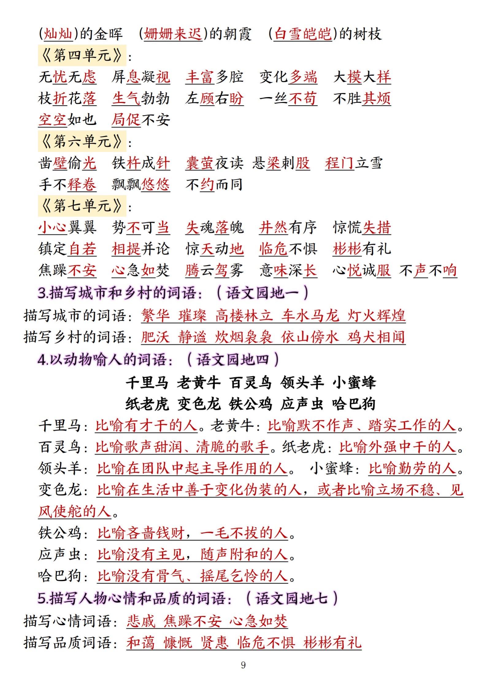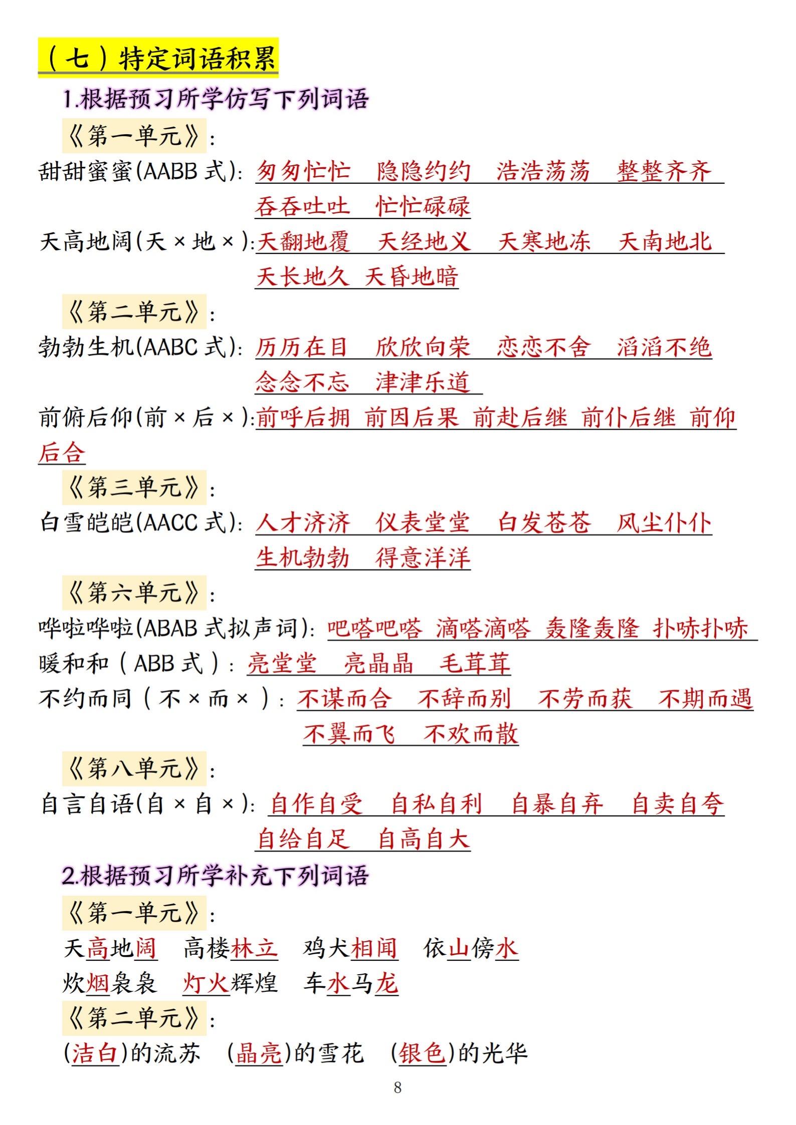 2026年春小学三年级语文下册知识汇总。寒假预习整理总结 八方文...