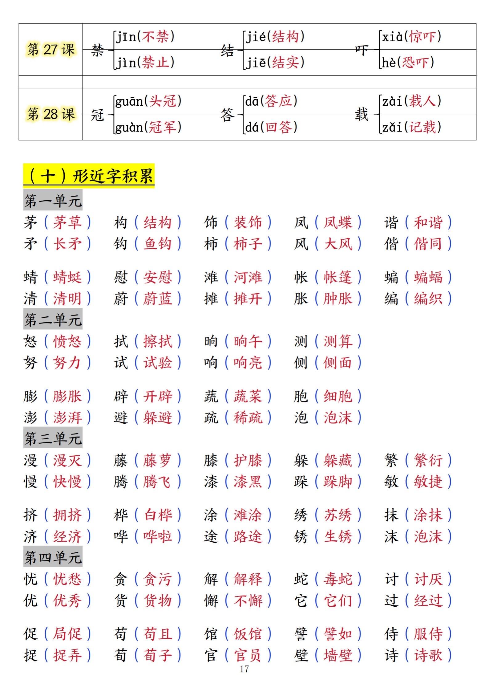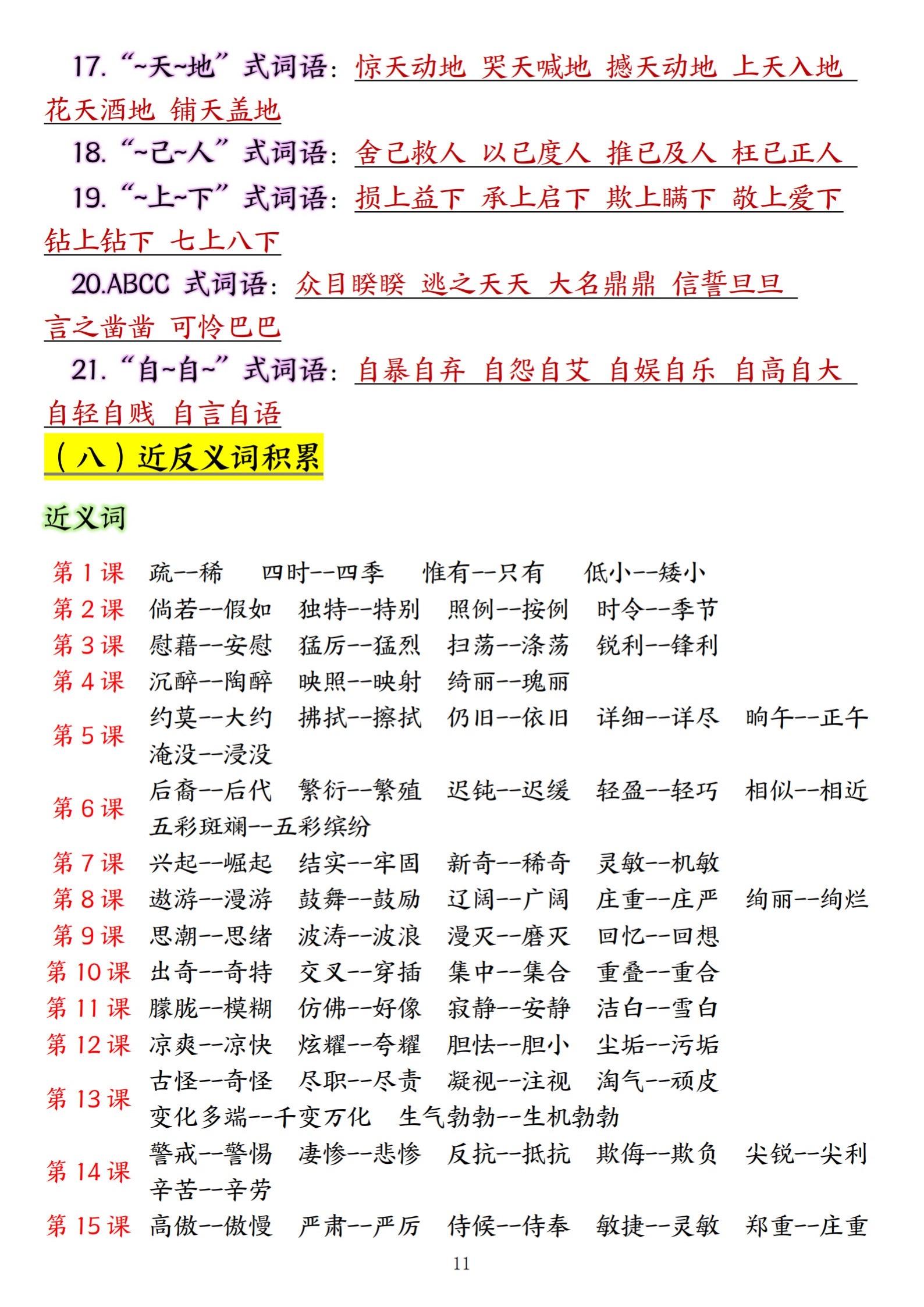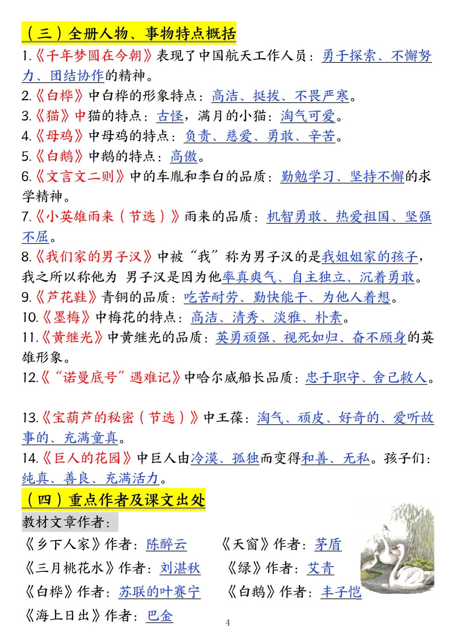 2026年春小学四年级下册语文知识汇总。整理总结寒假预习八方文...