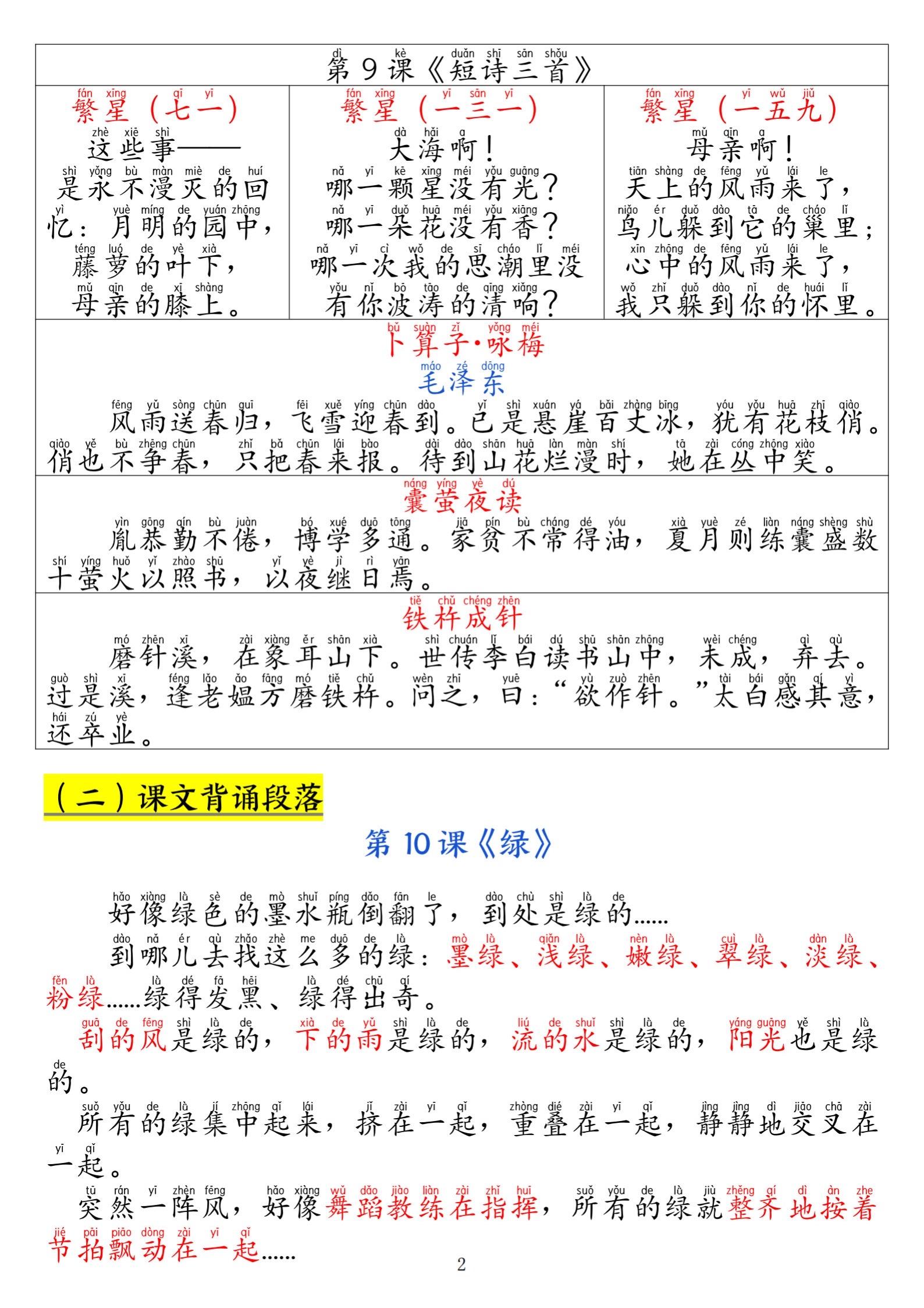 2026年春小学一年级语文下册必背和默写。 八方文印店,有需要可以...