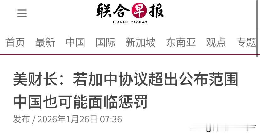 美财长一语惊人,如中加协议超出范围,不但加拿大要被罚,连中国也会不放过 1月25日,美国财长贝森特在美国广播公司的节目中谈起,加拿大与中国达成降低贸易壁垒的协议,他整个人显得非常的震惊很迷茫,不知道几个月前还跟美国一道向中国钢铁产品征收高额关税的卡尼为什么会180度大转弯,而且面对美国的威胁态度还如此的坚决。 他隔空对卡尼发出警告,如果让美国发现,加拿大和中国签署的协议是为了让廉价的商品,尤其是汽车行业进入美国的话。那么美国将会对加拿大征收百分之百的关税,同时也不会放过中国 对于这件事情,我们是怎么看的?特朗普和美财长,这两天因为明尼达州的事件,开始疯狂的转移目光,一边拿加拿大说事,一边威胁着要和伊朗开战。其根本原因是因为美国本国内部的抗议,他已经按不住了。但是这种不解决问题,转移目标的做法,又有什么用呢?只不过是进一步暴露美国人无耻又蛮横的嘴脸,让全世界认清美国人的真面目而已,逐渐的避而远之