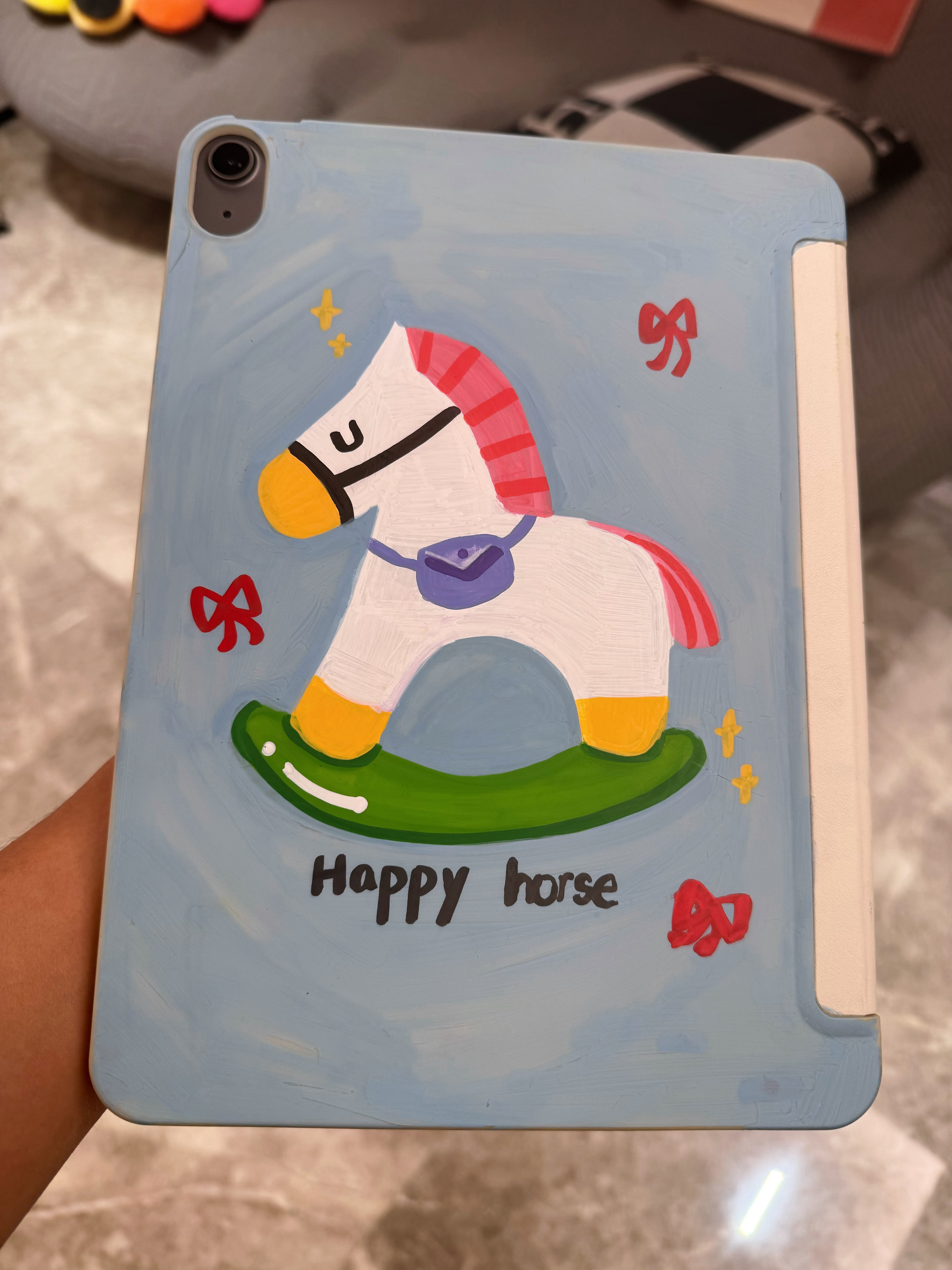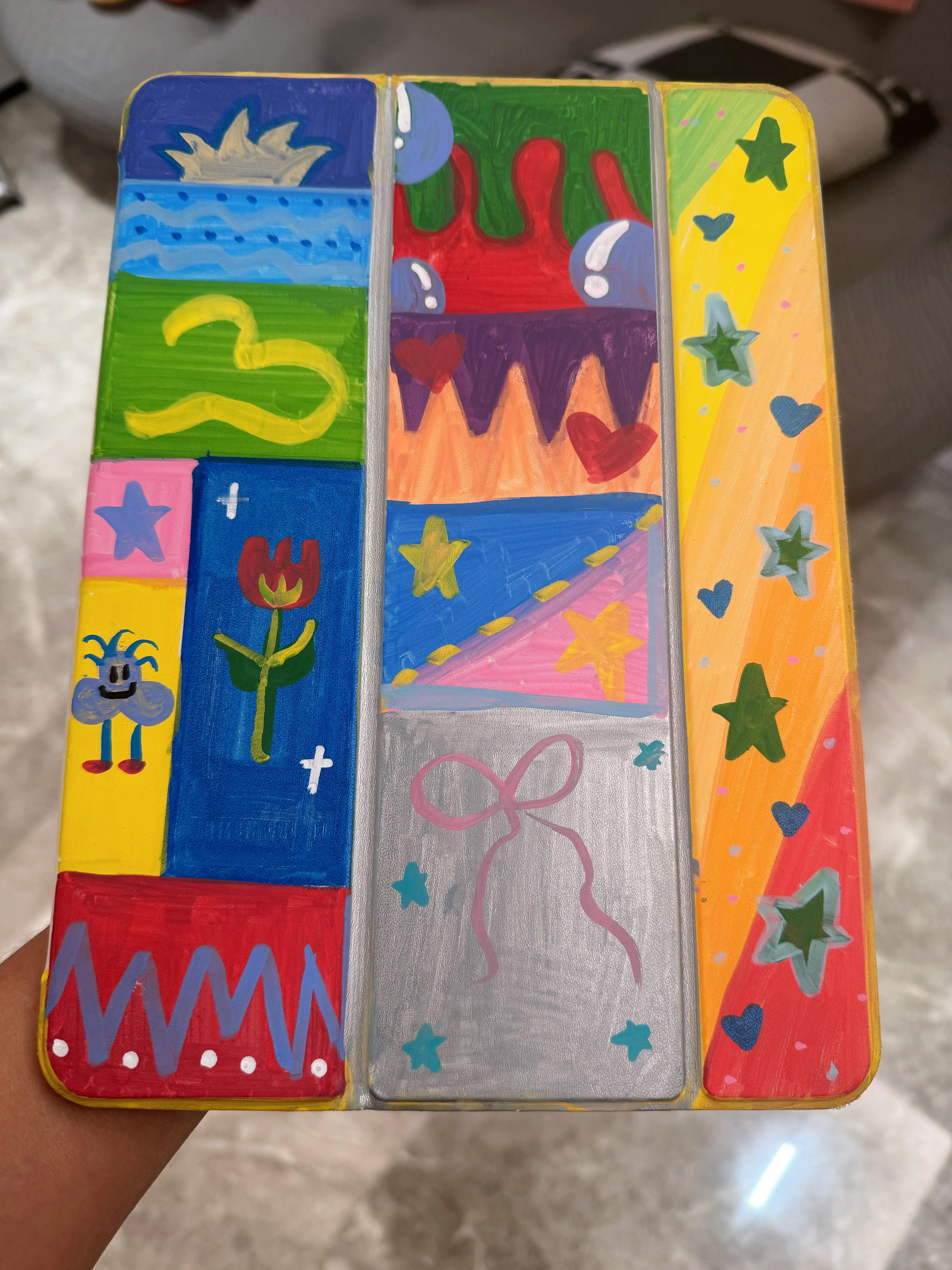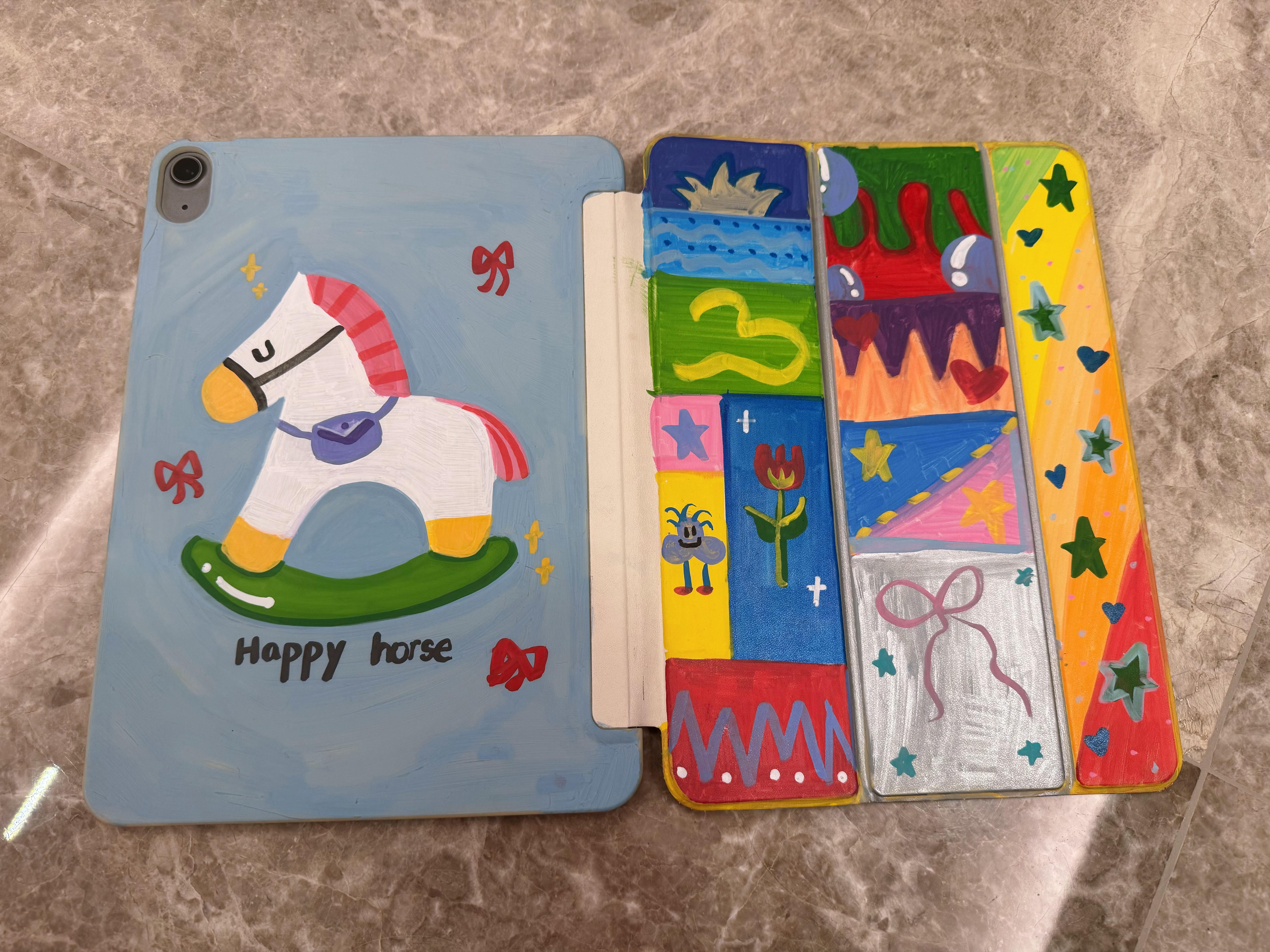 该省就省、该花就花、原本妹妹破败不堪的白色iPad壳子、在姐姐的妙笔生花下给拯救回来了、现在变成了独一无二手工绘制的壳子