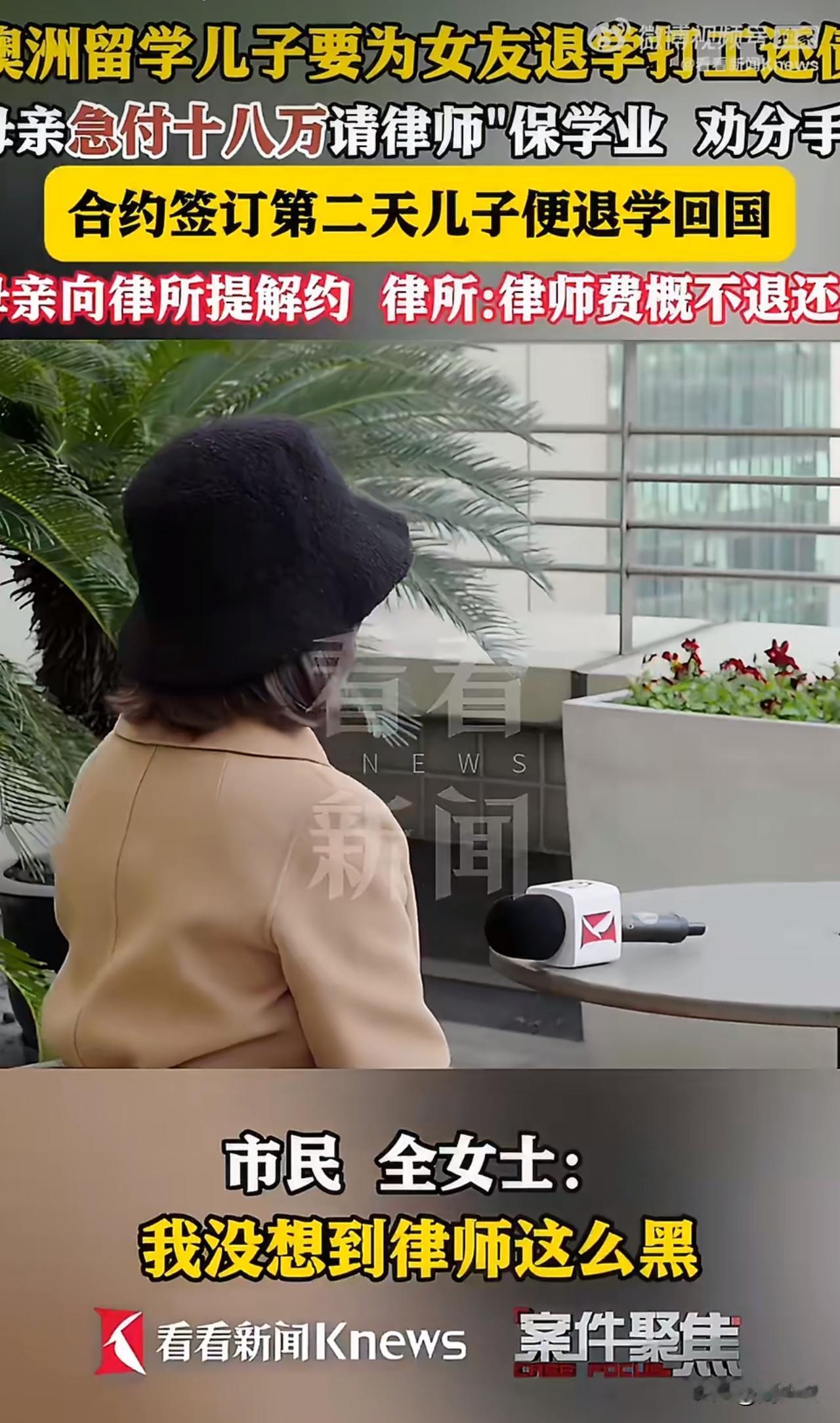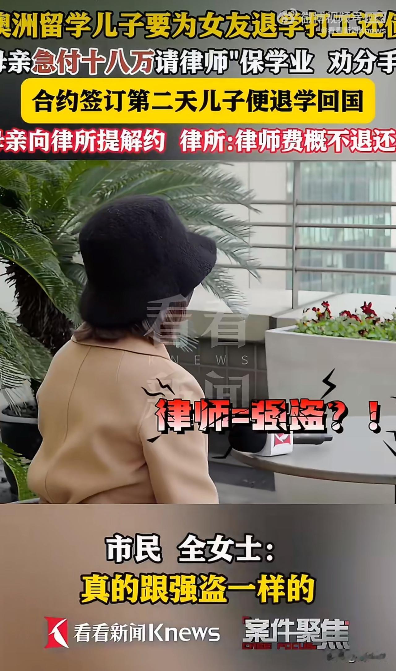 “这波操作太糊涂!”据媒体报道,一位妈妈为了劝阻留澳儿子给女友花30万还债,甩出18万律师费,委托律所帮着“保学业、劝分手”。谁料,签合同的第二天,儿子就直接退学回国,完全没按她的预想走。于是要求律所退费却被拒,理由是合同写了“律师费不退”。 此事曝光后引发关注,网友炸开锅。有网友说:“这钱花得太冤,劝分手哪是律师该干的活!” 还有人吐槽:“家长管得太宽,孩子的感情哪能靠花钱断?” 看完这事,周少觉得这位妈妈的操作太离谱了,简直是糊涂到家。想用金钱和外力干预儿子的感情与学业,本身就走偏了方向。 实际上,比起强行插手孩子的人生选择,还不如试着平等沟通、尊重他们的决定,或许才是更靠谱的方式。 除此之外,这份“劝分手”的合同,本就不在法律服务范围内,“不退费”的条款更是不合理。家长们遇事别上头,先捋清事理和法律边界,不然很可能像全女士这样,落得人财两空的下场。#寻美三湘# #长沙新朋友#