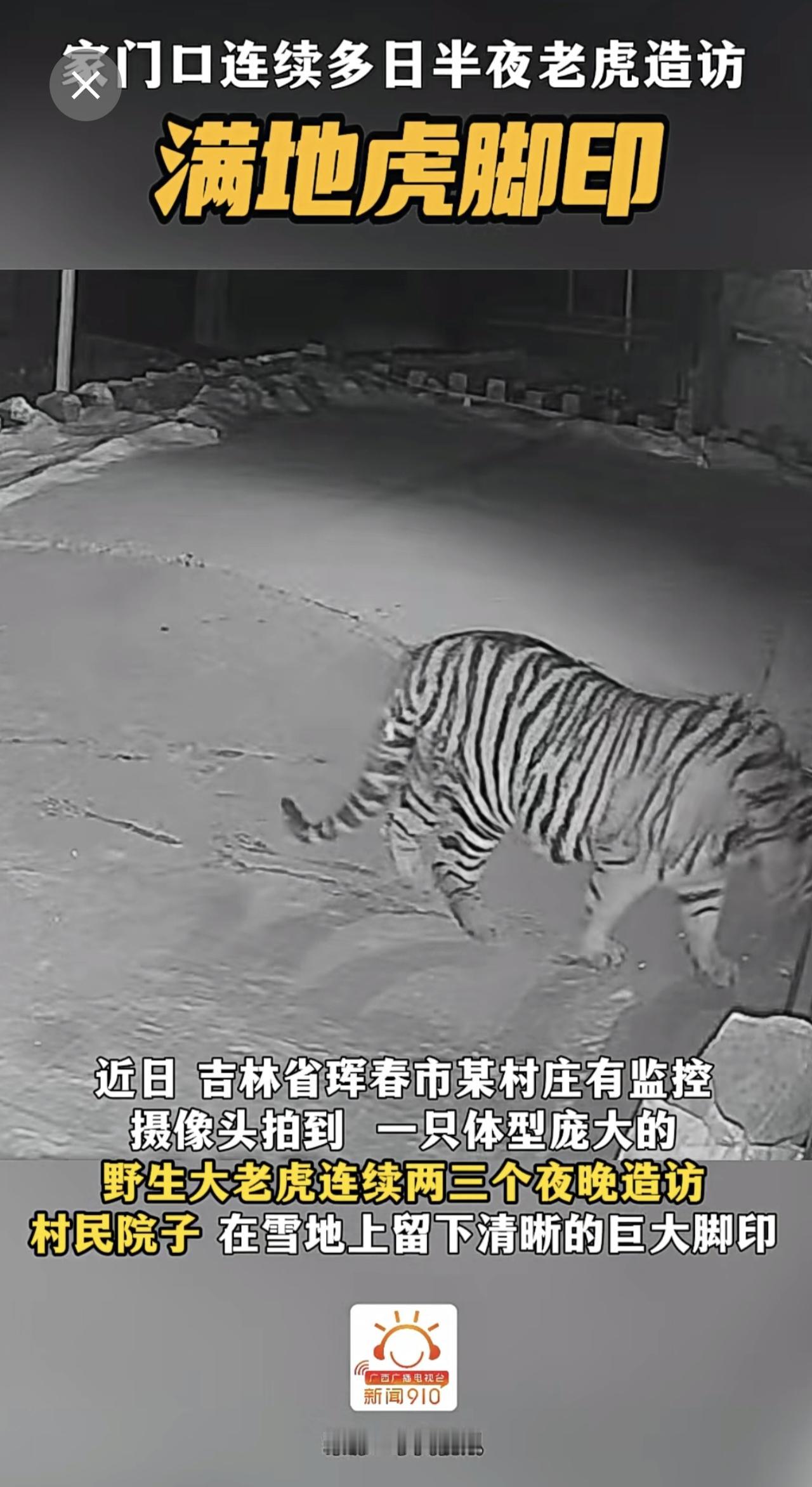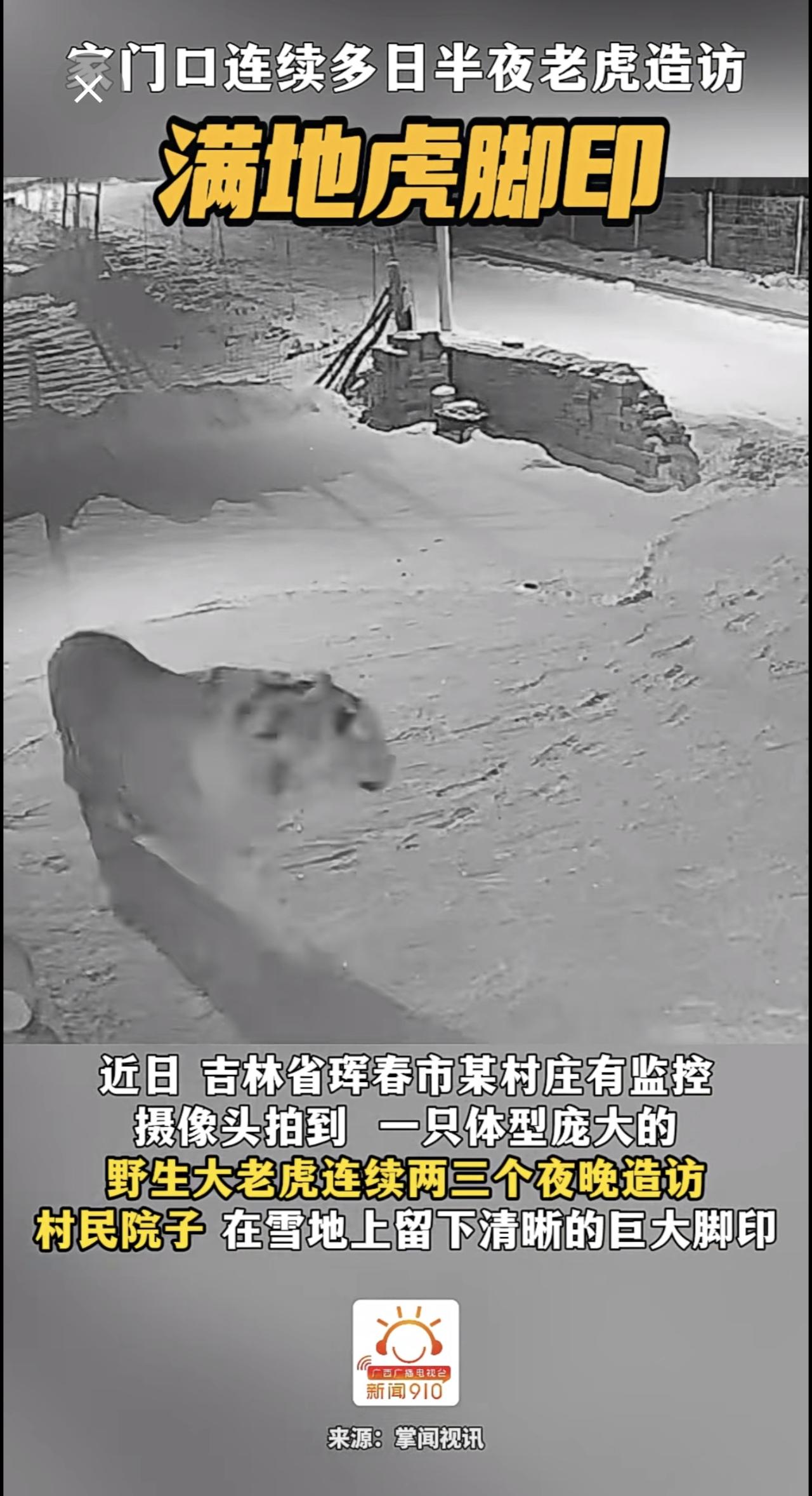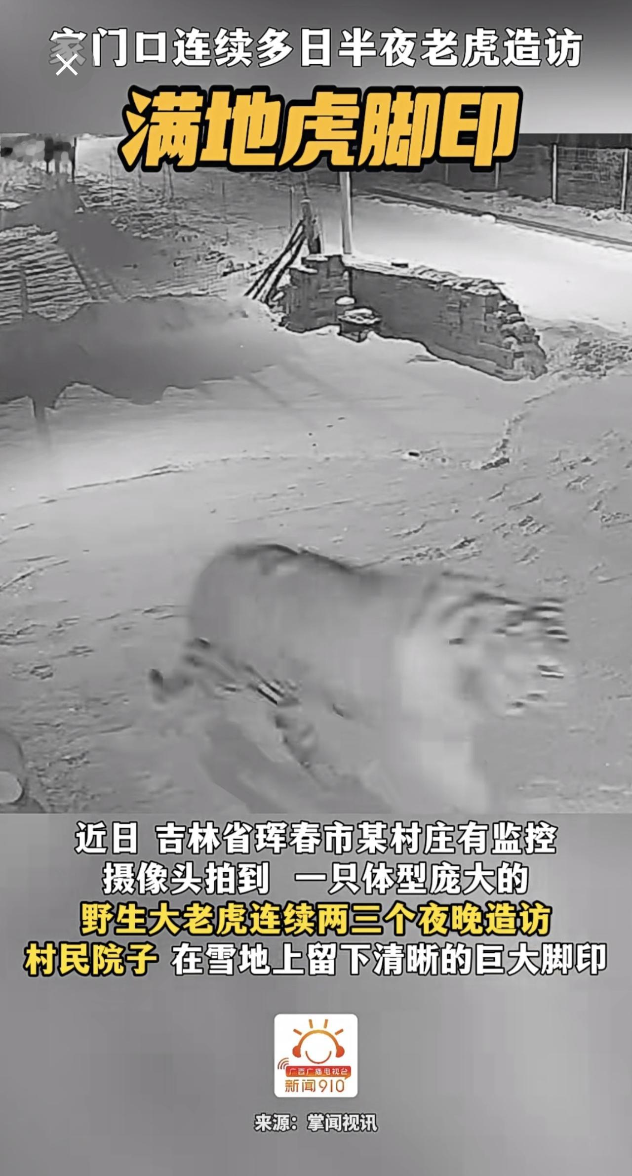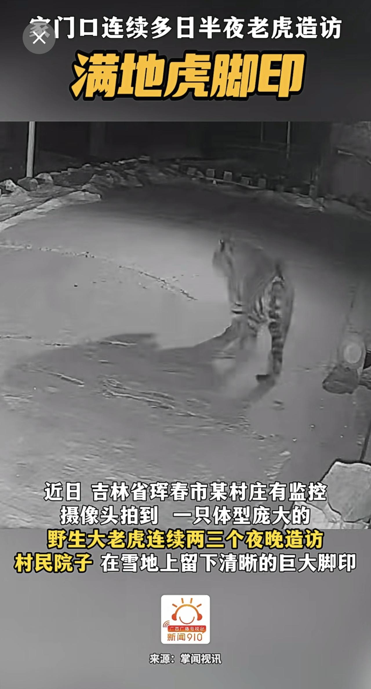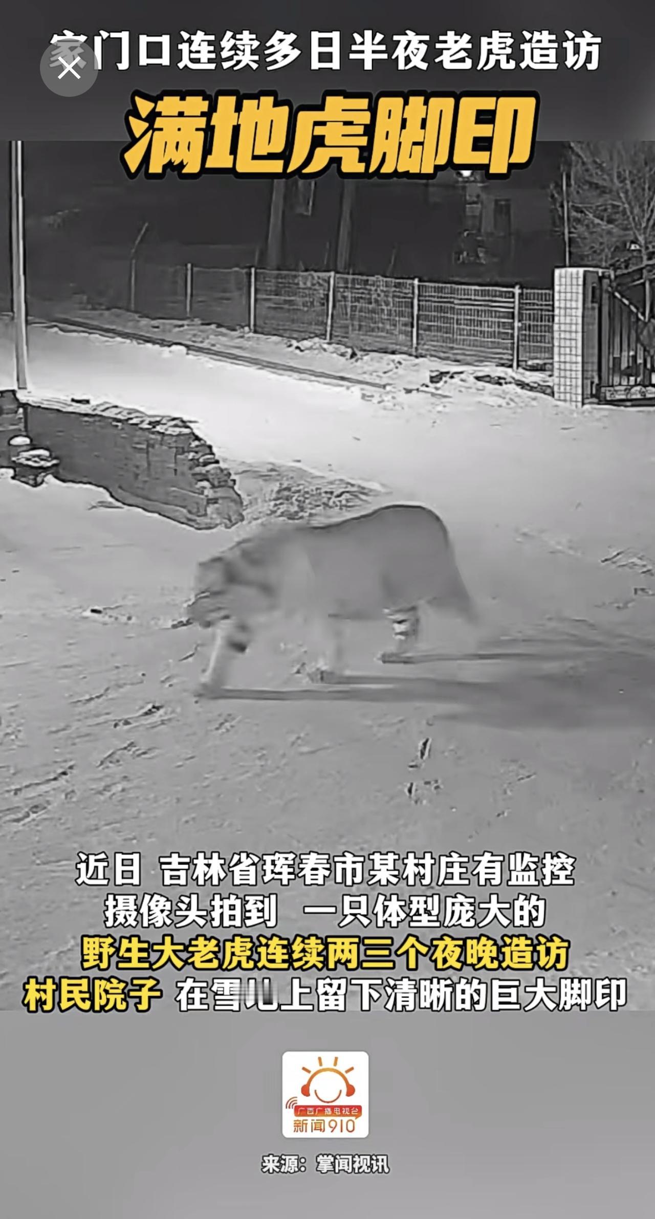 吉林村民家门口出现老虎1月21日凌晨,夜色正浓,吉林延边珲春市密江乡下洼子村