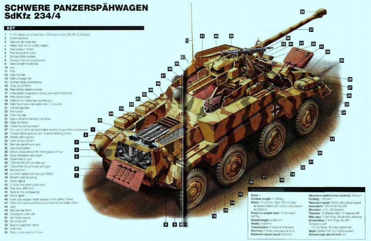 1945 年,柏林,克洛普施托克大街,城市快铁桥下方。两名当地市民路过一辆被击毁的德军 Sd.Kfz.234/4 重型反坦克装甲侦察车。画面右侧,一名美军士兵正在查看这个残骸。 据考证,这辆装甲车属于德军第 18 装甲掷弹兵师第 118 装甲侦察营。 党卫军第 18 装甲掷弹兵师(18. Panzer-Grenadier-Division,图2是该师的徽章)是德军老牌装甲掷弹兵部队,二战后期经多次重创后重建,参与柏林市区巷战,第 118 装甲侦察营(Pz.Aufk Abt.118) 为其直属侦察单位,司令部配属该型装甲车承担指挥 / 侦察 / 反坦克任务。 Sd.Kfz.234/4 重型装甲侦察车(参见图3~4)是德军二战后期制式8×8 轮式重型装甲侦察车,也是德军当时最先进的轮式装甲车辆之一。该车搭载一门75mm Pak40/3 反坦克炮,可击穿盟军主流中型坦克装甲,反坦克能力很不错。而且,其采用8×8 全轮驱动,机动性优异。不过,该车最大的弱点是装甲防护薄弱(10-30mm),巷战中毫无防护优势。