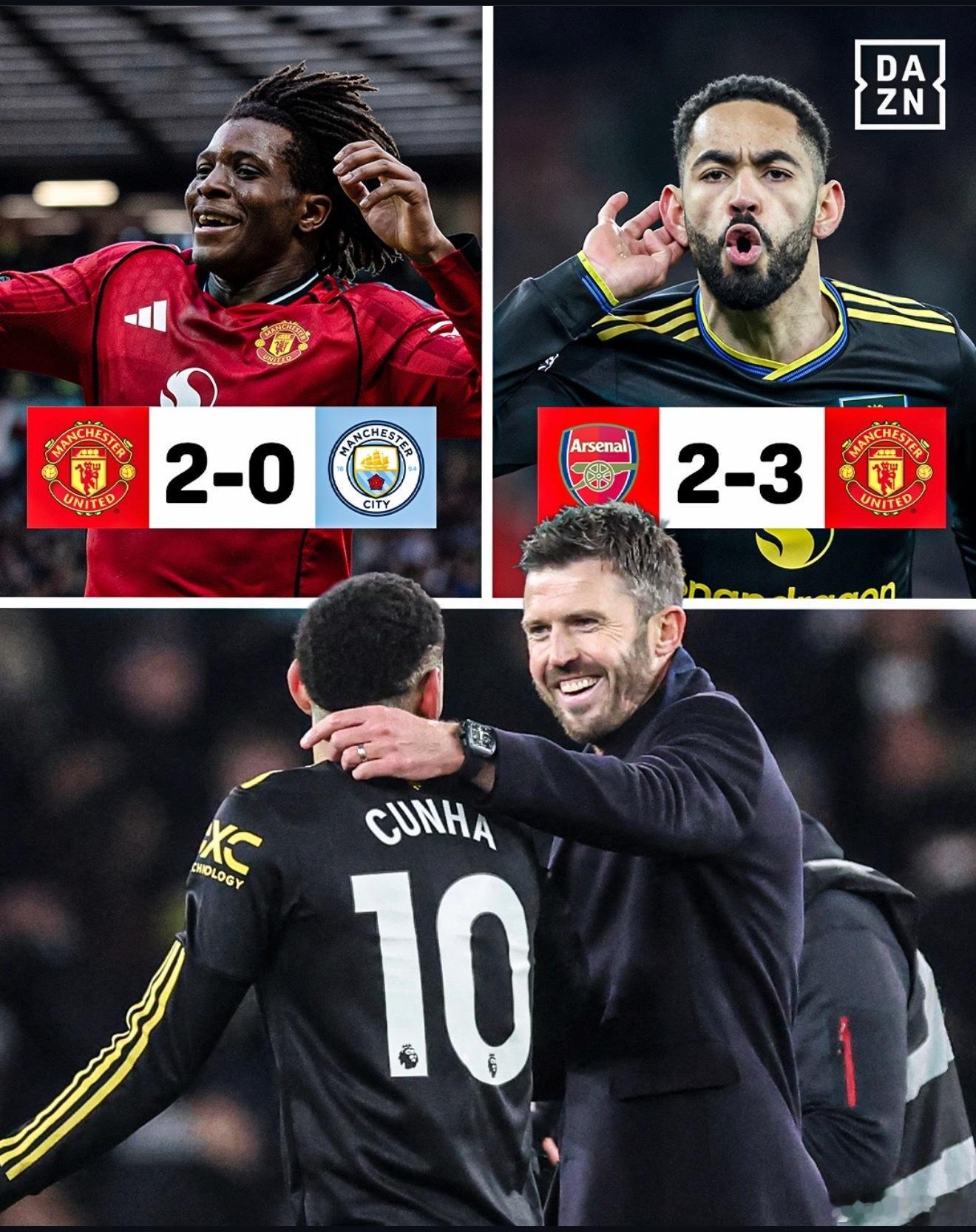 阿森纳vs曼联 2 比0 赢下曼市德比,接着客场 3 比 2 力克领头羊阿森纳!卡里克上任后两场比赛,曼联连续战胜英超排名第二和第一的两支强队。别觉得曼联就是为了劫富济贫搅个局,积分榜上, 曼联已经回到了英超第四的名次。重返欧冠越来越有希望。 马奎尔当选本场最佳,已经足以显示曼联这两场最大的取胜根基,这两场比赛曼联控球率均不占优,但防守质量都相当之高,且进攻效率都高过对手,无论是曼城还是阿森纳,面对曼联防守,运动战基本都没什么办法。至少到目前为止,换帅的效果可以用立竿见影来形容。另外,这场拿下之后,基恩等等那几个曼联名宿喷子,是不是可以稍微消停一会了?英超