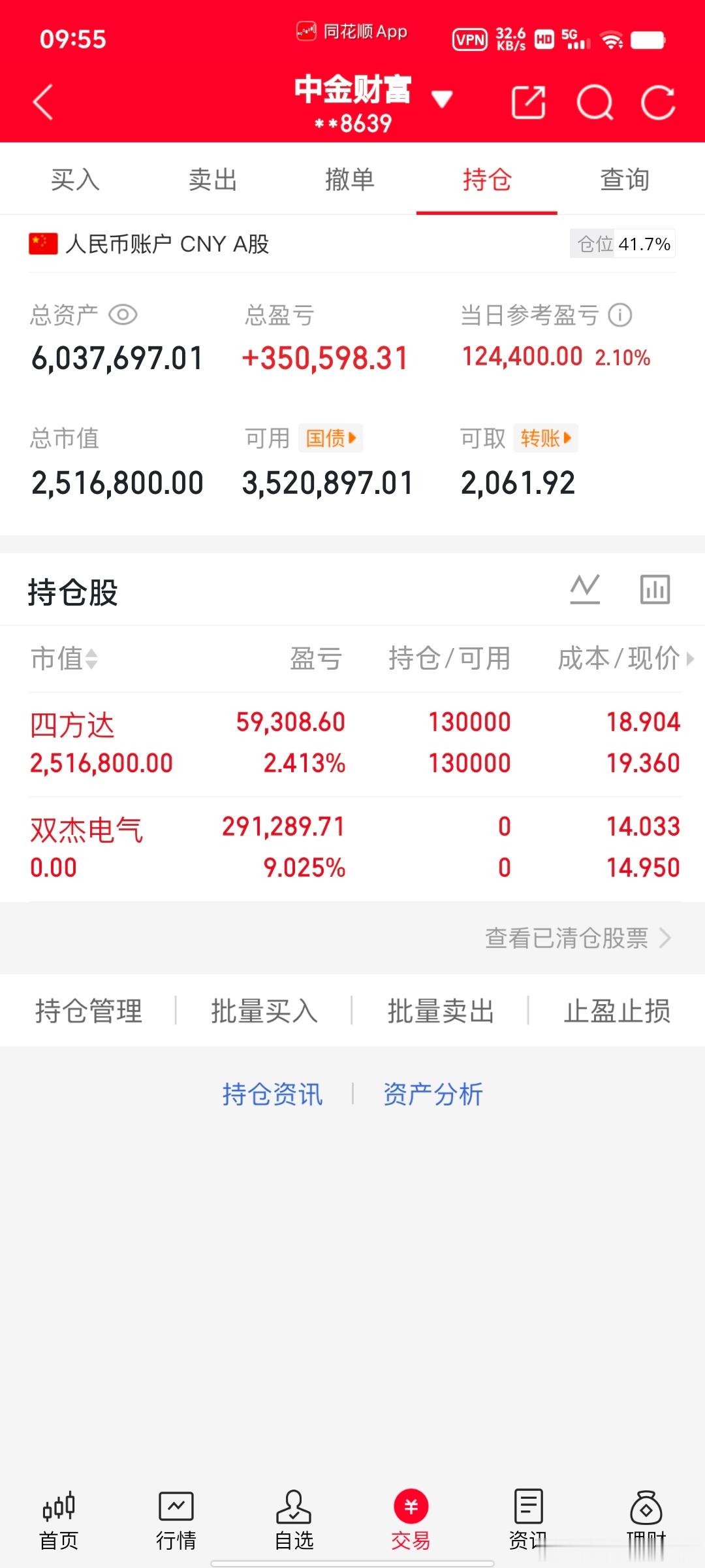各位战友!我的千里马(双杰电气300444),全部卖出,记得给我点赞评论178!