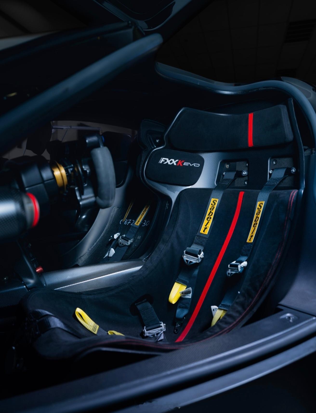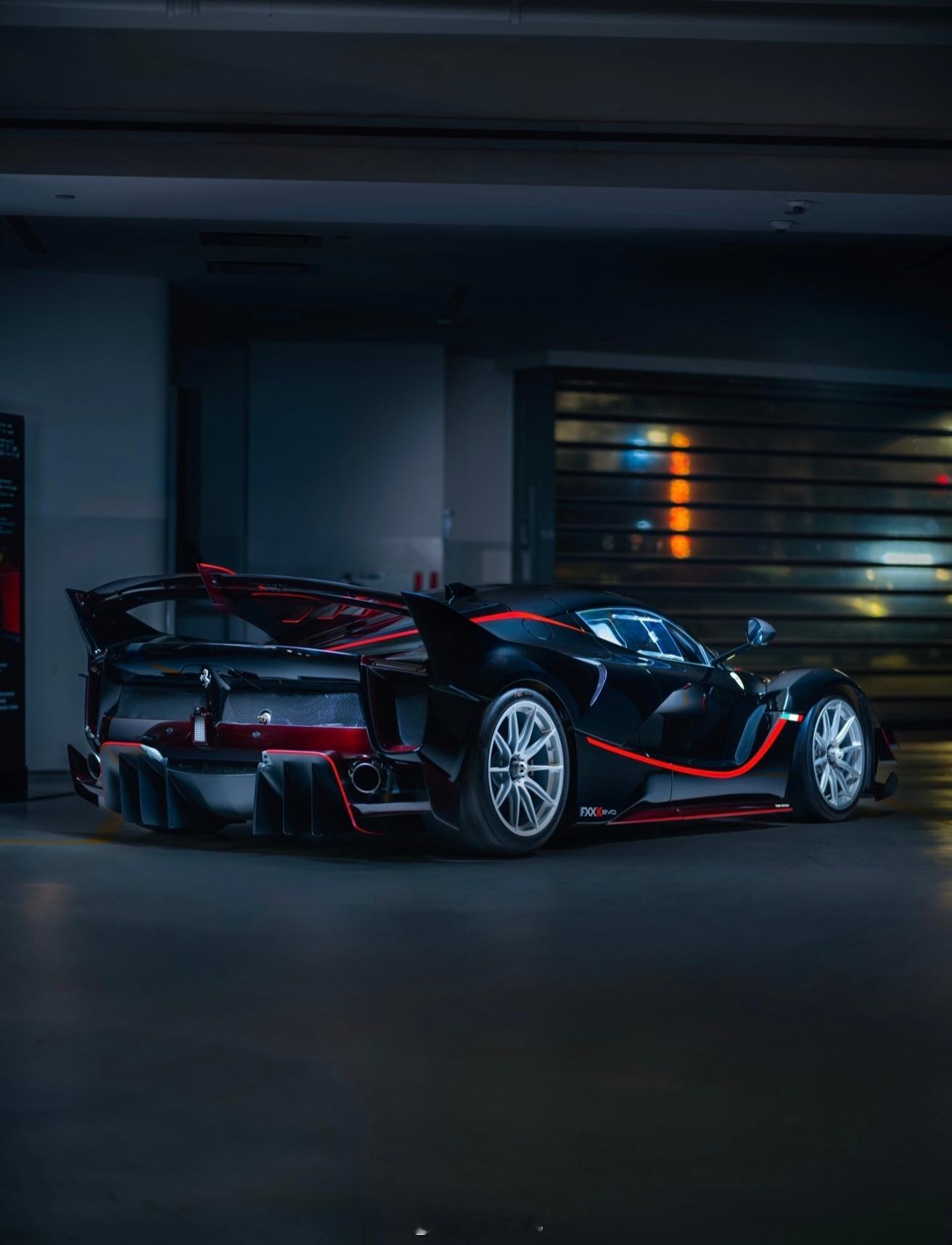 跑车大v聊车汽车美图 法拉利FXX-K Evo的设计理念以“极致赛道性能”为核心,融合尖端科技与赛车经验,专为法拉利顶级客户打造的非公路竞技机器。其设计围绕三大核心:空气动力学革命:车身采用全主动空力套件,包括可调前分流器、双层尾翼及底部涡流发生器,通过实时调整攻角,在250km/h时产生超过830kg的下压力,较基础版提升23%。前轮拱导流槽与后扩散器的协同设计优化气流路径,确保高速稳定性。混合动力极限化:6.3L V12发动机与HY-KERS电机的组合被重新调校,总输出达1050马力。电机响应速度提升30%,能量回收系统在重刹时效率提高15%,实现连续圈速输出能力。钛合金排气系统减重12kg,同时优化声浪频率。人机协同进化:搭载第二代SCE-EVO动态控制系统,每秒300次调整扭矩分配与悬架阻尼。方向盘集成43个传感器,配合车载数据记录仪(每秒采样500组数据),帮助车手与工程师共同优化驾驶策略,其数据直接反哺法拉利GT赛车研发。车身采用F1衍生碳纤维单体壳,刚度提升12%的同时实现1.6kg/马力的推重比。