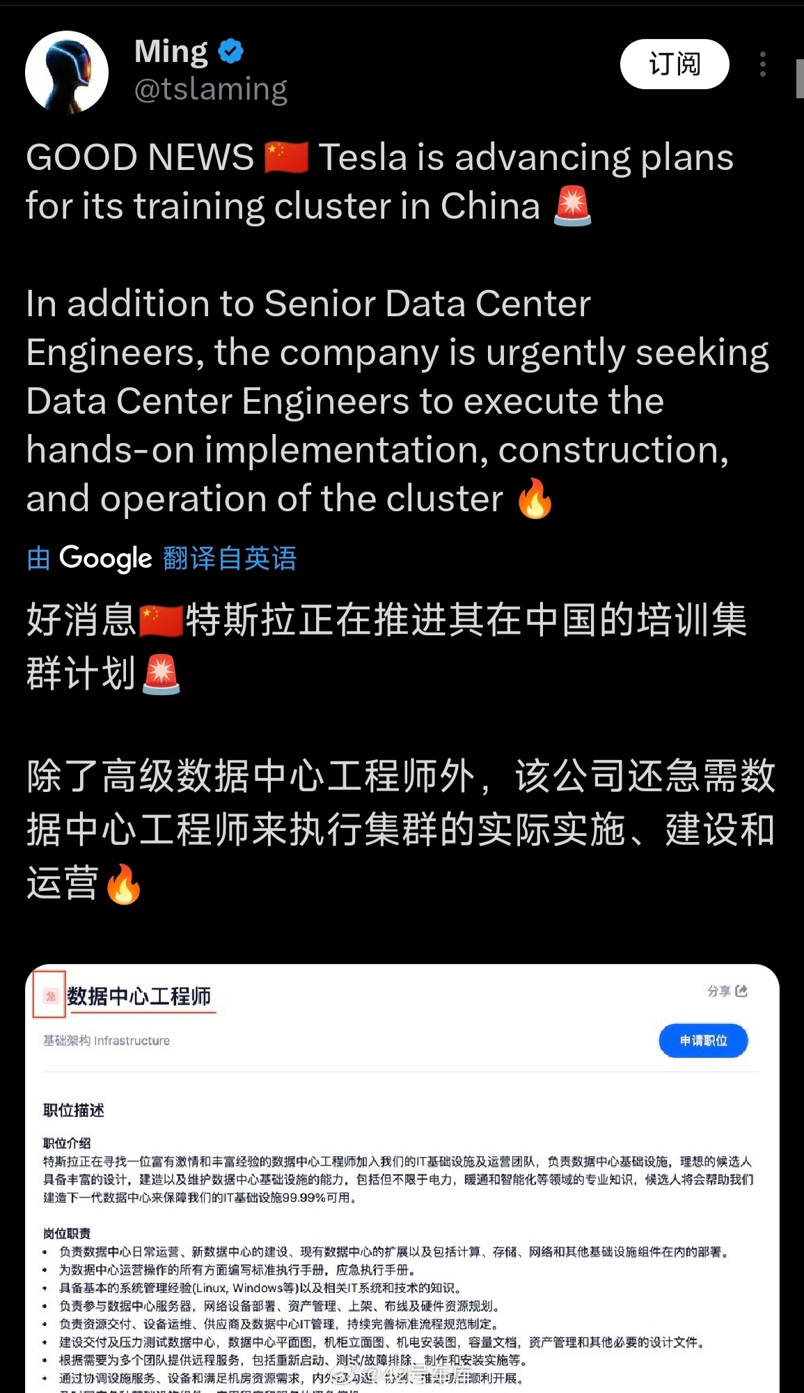 特斯拉中国在招数据中心工程师,FSD落地要加速了?42mark特斯拉