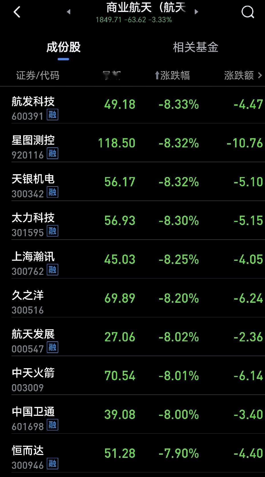 上周五追进的商业航天,今天全埋,散户真是太难了。 商业航天本来还是香馍馍,一夜间,成了烫手的山芋,今天谁见谁逃。 股市就是如此神奇,今天你还受万人追捧,明天你就是人人避之不及的破瓦罐。所谓的风口红利,不过是主力画的饼,饼碎了,留下的只有散户的套牢单和满屏的绿K。 但话也说回来,今年商业航天的行情还有,这只是短暂的资金出逃,不代表今年行情结束了。 只是想赚钱,就看你能不能忍受寂寞。航天概念股 中国商业航天 航天发展股票 航天发展市值