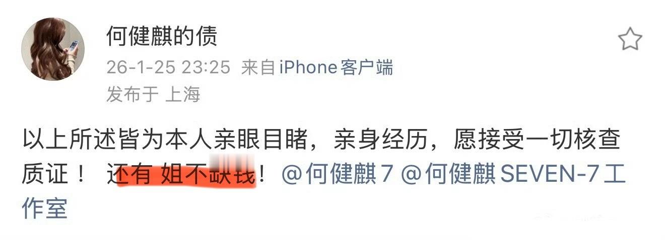 前女友回应何健麒,前女友硬刚何健麒工作室的声明“愿接受一切核查质证,姐不缺钱”!