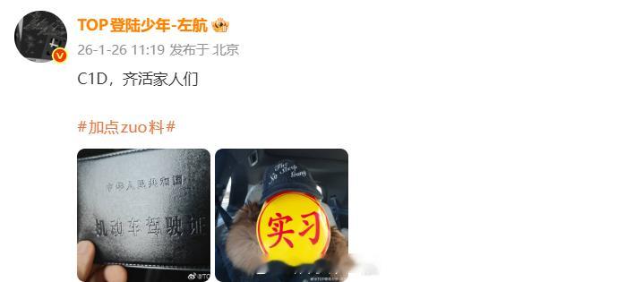 左航拿到C1D驾照左航演我拿驾照 左航演我拿驾照,一拿到立刻晒出来!