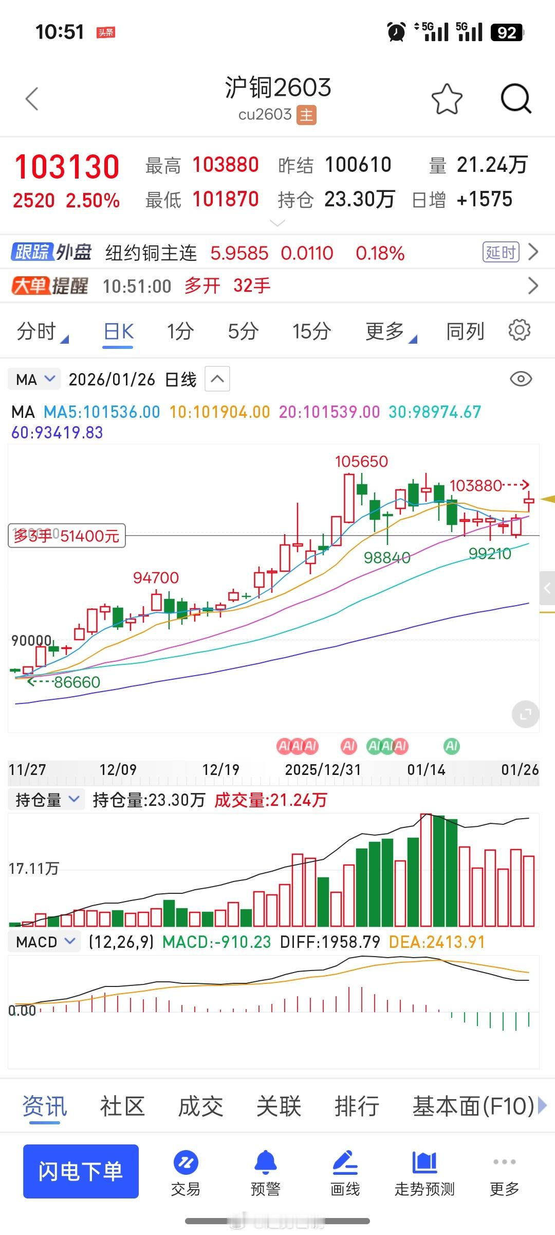 继续看好铜和铝日线级别的多单,继续耐心等待突破新高。买v+的可进v+群进阶学习,也有好单和做单技巧分享。黄金超话铜黄金期货 铝螺纹钢
