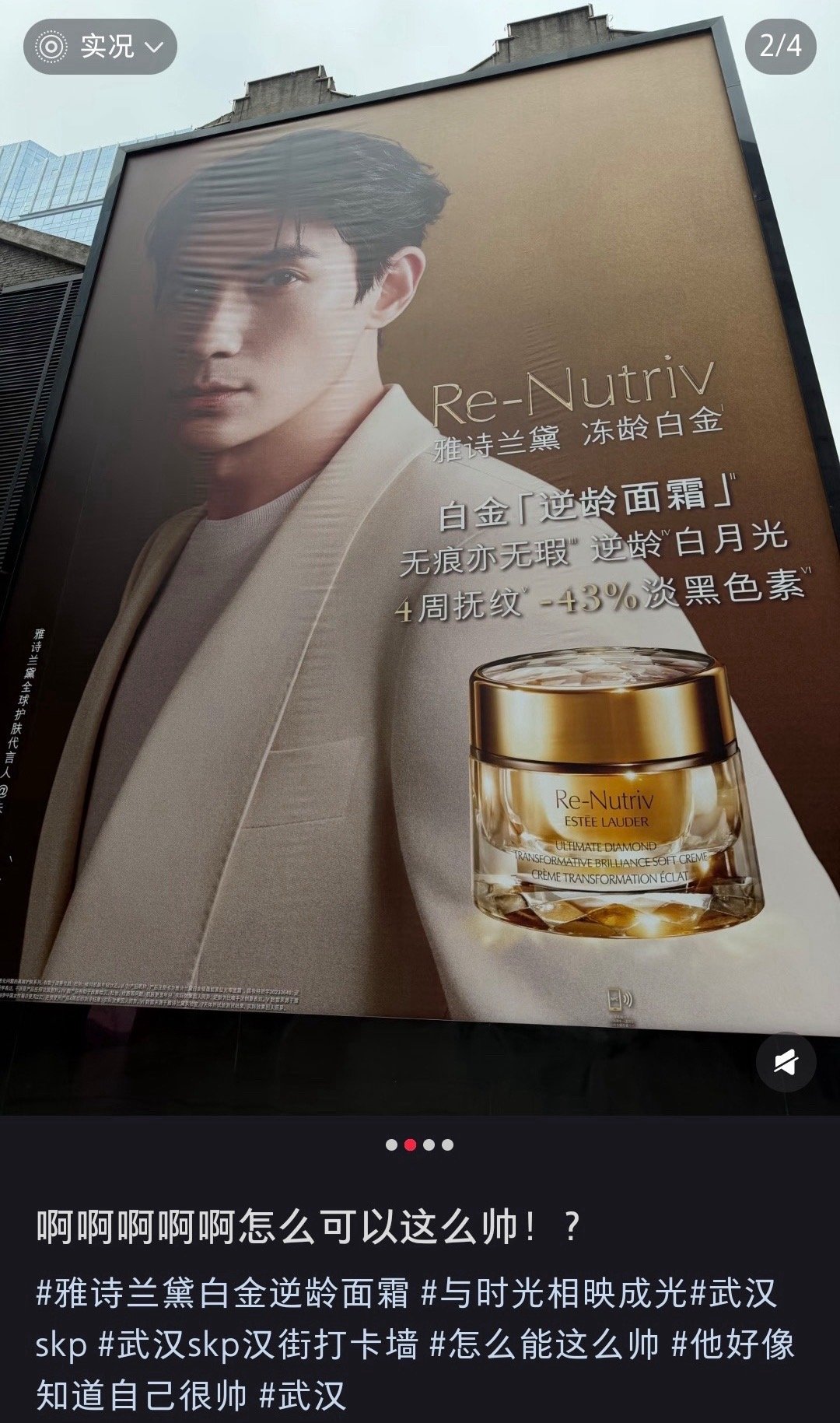 武汉 超大幅地广朱一龙雅诗兰黛全球护肤代言人杨幂朱一龙刘浩存 新年聚会