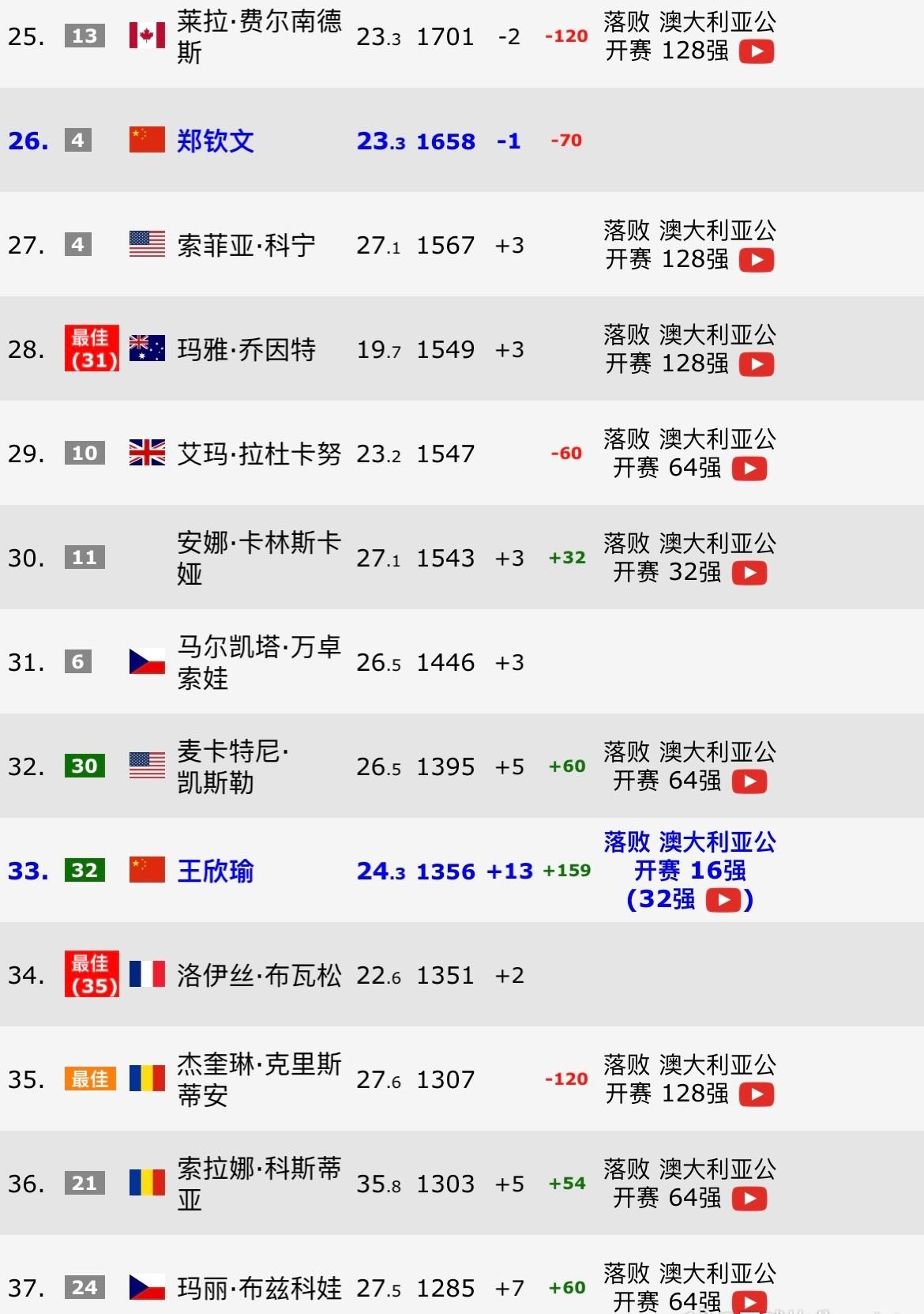 随着独苗王欣瑜出局,澳网成人单打赛场没有中国球员了,后面只能看青少年单打,孙心然