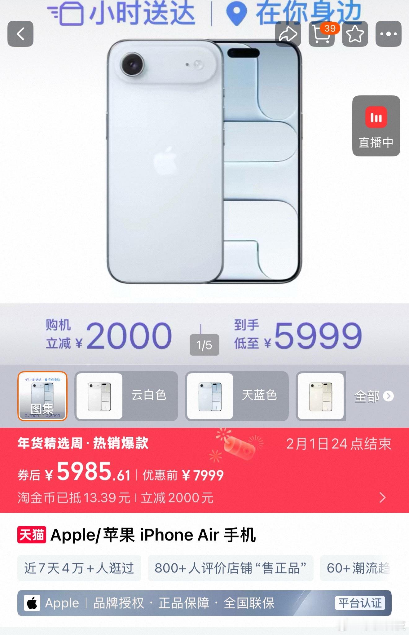 网友刚买iPhoneAir第二天就降价2000元苹果这么一降价,当初跟风推出的国产Air也得降,而且一点儿热度都没有,实惨。这种跳水操作也就果子敢这么玩,要是换国产品牌早就被骂惨了。之前首发买的基本亏麻了,现在回收的话还能值个三四千左右?