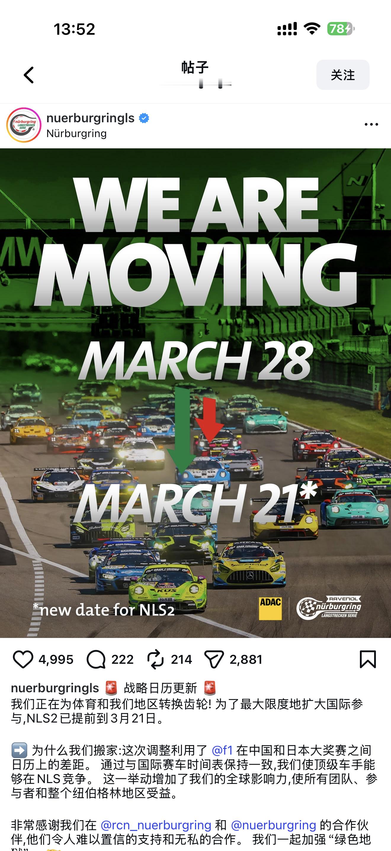 TOTO对维斯塔潘的爱,震耳欲聋 纽博格林官宣NLS调整赛历,以便顶级车手能够参与到NLS的竞争中。汽场全开