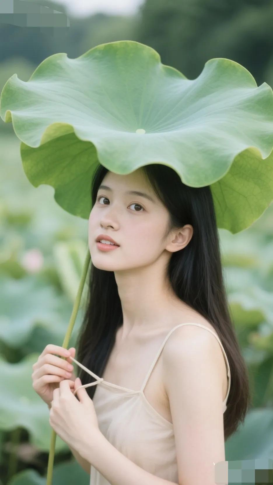莲叶遮面,清风拂面。晚风轻拂水面荷间泛舟