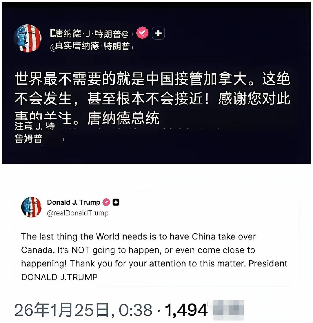 面对加拿大总理卡尼跟中国最近的紧密经贸合作,美国总统特朗普昨天在公开媒体两次说到针对此事的态度:“世界最不需要的就是中国接管加拿大,这个绝不会发生,甚至根本不会接近,感谢你对此事的关注。” 过了半天,美国总统特朗普又表态:“中国正在成功且彻底的全面接管曾经伟大的加拿大,看到这一切,我非常难过,我只希望他们别碰冰球!” 弱弱的问一下大家,我们接管加拿大了吗?我们突然之间这么牛逼了吗?! 如果我们真的接管加拿大了,那曾经几百万移民加拿大的华人,是不是蒙了?搞一个措手不及[捂脸][呲牙] 加拿大总理卡尼比上一任总理特鲁多确实表现的强硬很多,不想成为美国的第51州,时隔八年,到访了中国,而且从中国进口新能源车、合作农业。美国总统特朗普肯定不爽,为什么不去美国进口福特汽车?! 美国现任政府主要国防决策是保护美国北美洲的彻底安全,保证西半球的绝对霸主地位。如果加拿大完全倒向中国,那他确实是不爽的! 堡垒一定是从内部开始打破的,西方曾经的友好盟友阵营开始散架,迟早有一天会支离破碎。因为这个世界没有永远的朋友,只有永远的利益。 当然,特朗普也好,卡尼也罢,他们的任期都是有限的,也许三四年以后,这种合作局面又会改变!美国如果民主党上台,加拿大按照历史的惯例,可能又会甜蜜的跟美国抱大腿。 但是有了这一届美国总统政策的经验教训,也许加拿大政府也不会像以前一样完全仅仅只靠美国。 (图片来源网络。如有侵权,请联系删除)
