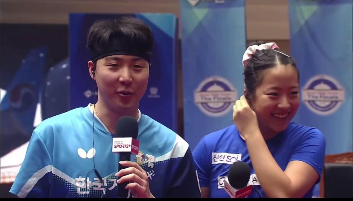 全韩锦混双夺冠后,申裕斌再次督促林钟勋“快说老婆我爱你”! 1月26日,全韩锦混双决赛中, 申裕斌/林钟勋3:1赵胜敏/朱芊曦, 11:2,10:12,11:9,11:9, 赛后采访环节, 林钟勋发表获奖感言时, 申裕斌催促林钟勋 “快说,老婆我爱你❤️!” 林钟勋非常不好意思的 完成任务一样,照说了! 因为林钟勋在一次采访中透露自己 婚后的生活细节, 老婆不高兴的时候会说 “你怎么对申裕斌妹妹那么好?” 林钟勋这时候就会哑口无言, 因为申裕斌是姑奶奶, 是自己的事业伙伴, 是免除服兵役的重要贵人, 而且申裕斌还会带着自己去 更大的舞台……