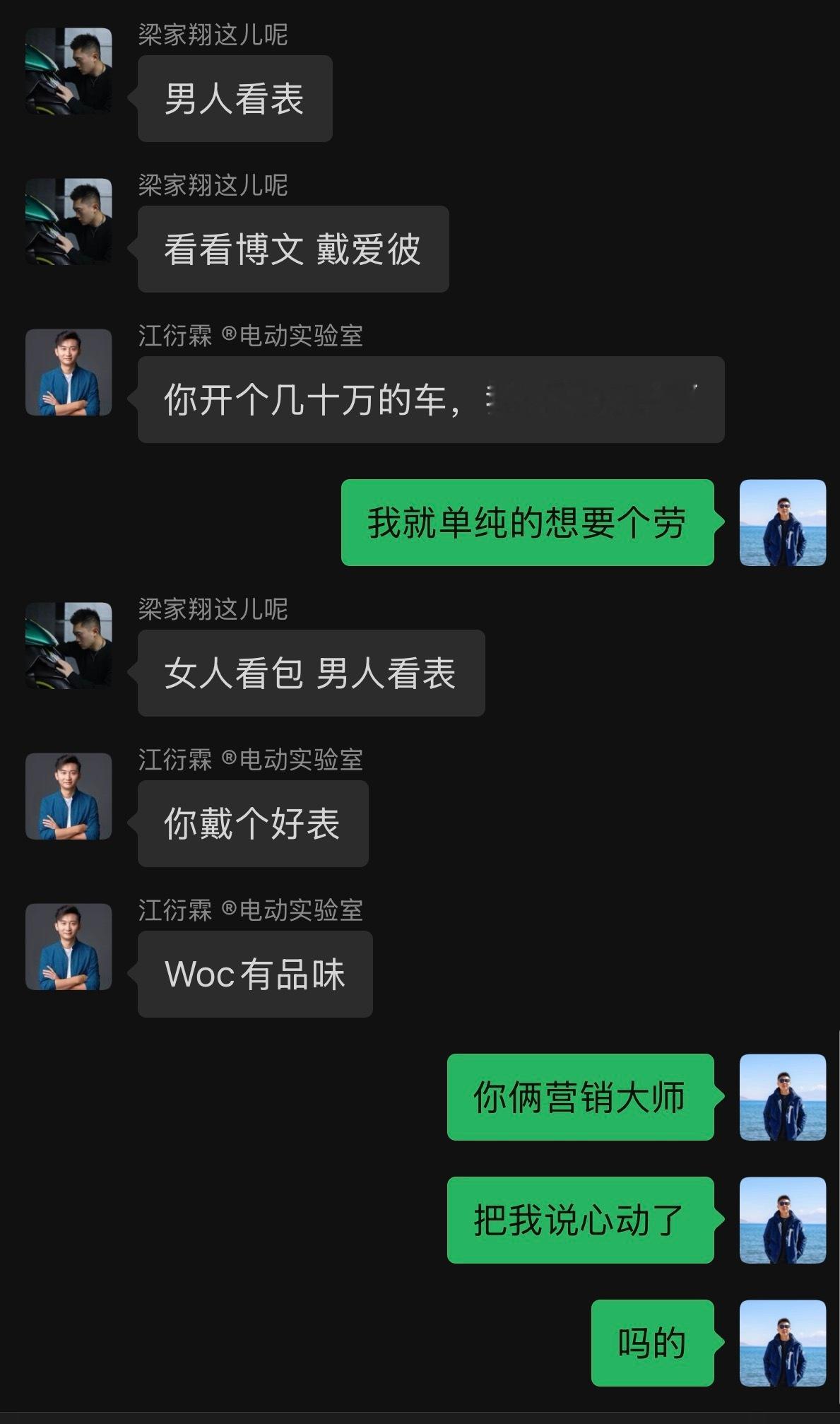 这两人营销大师啊!我只想买块日志戴戴,结果给我说到绿水鬼雪碧圈迪通拿了,愣是把我