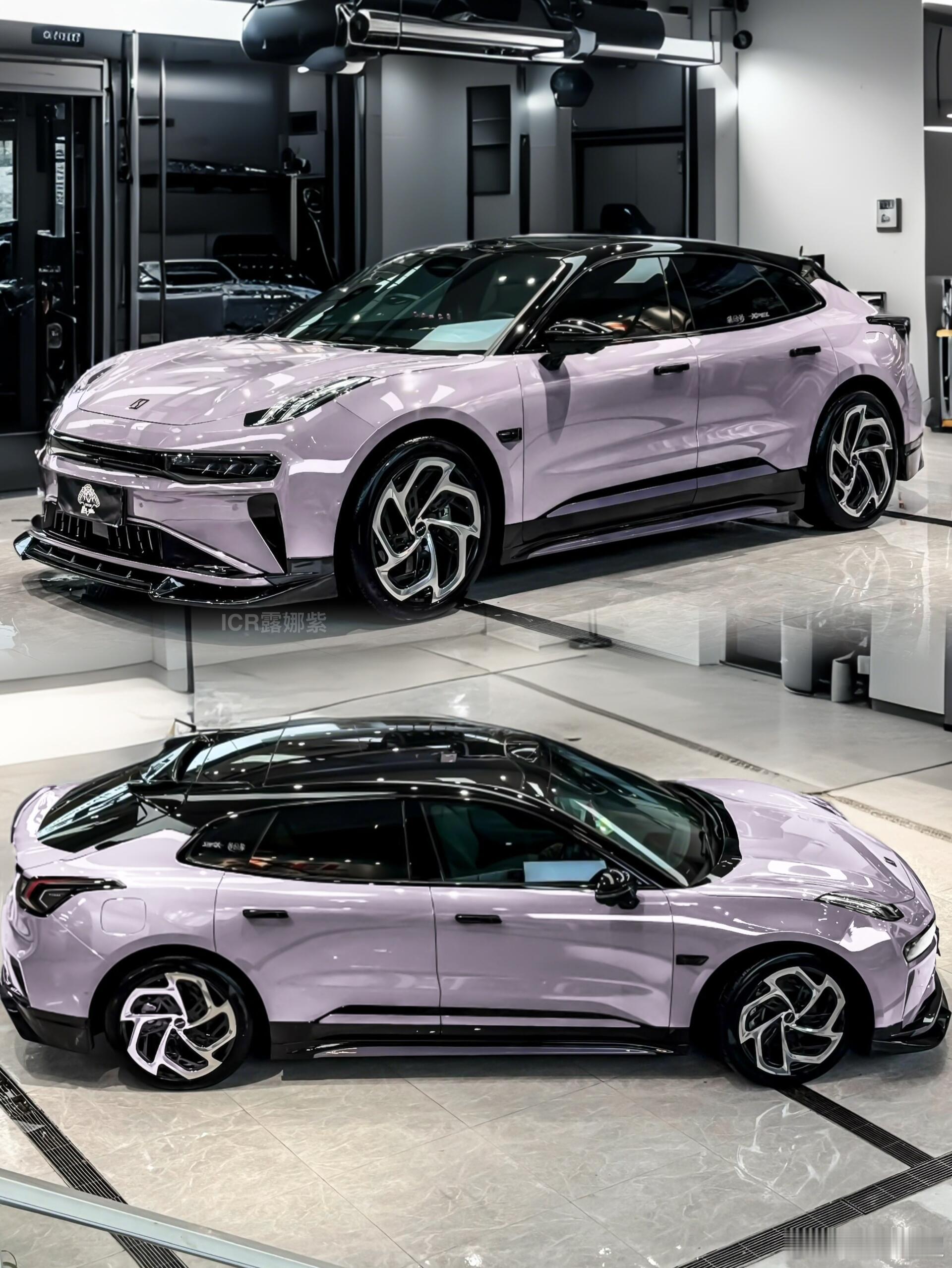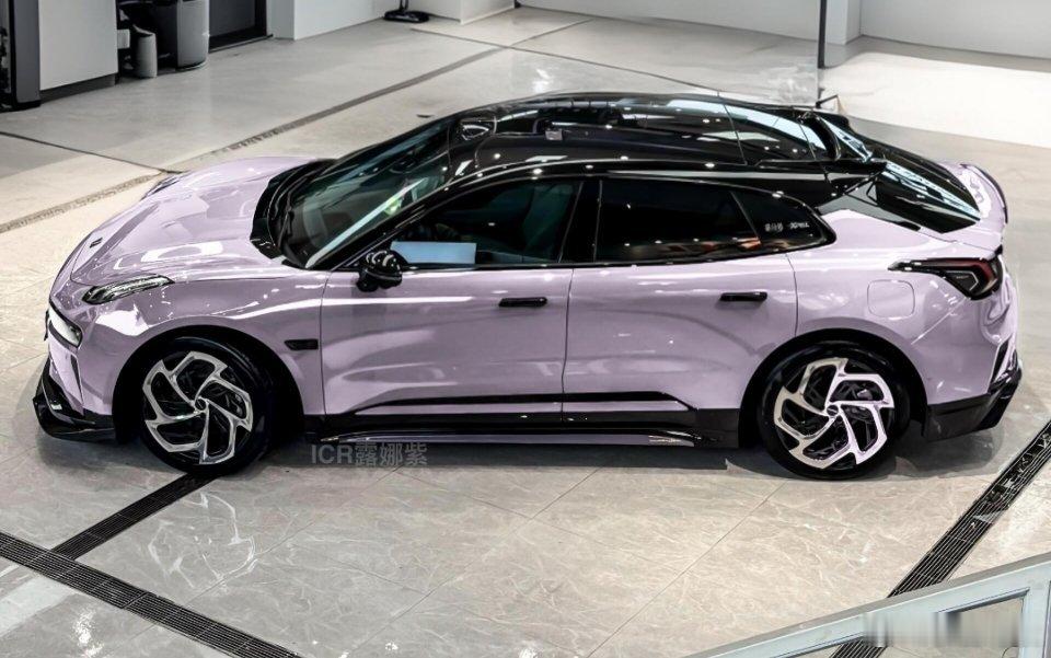 这辆车的粉紫渐变车漆质感超赞,流线型车身优雅又动感,溜背造型颜值拉满,空间宽敞又