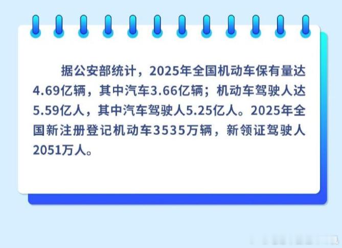 全国汽车驾驶人5.25亿人 全国机动车保有量4.69亿辆,新能源车保有量4397万辆,持有机动车驾驶证人数5.25亿人。不是我不客气哈,这5.25亿人里,有2亿会开车都算人均开车能力强了