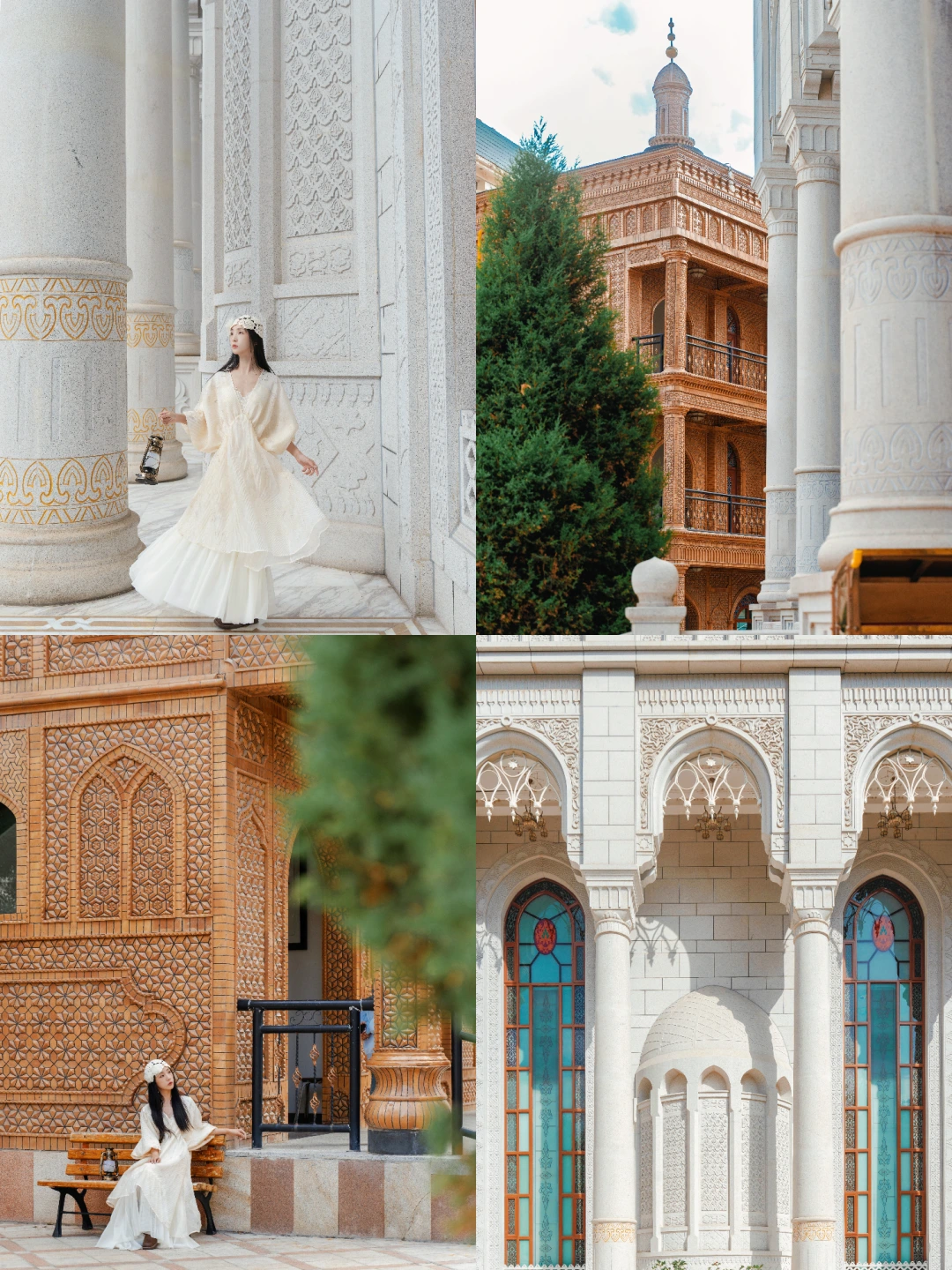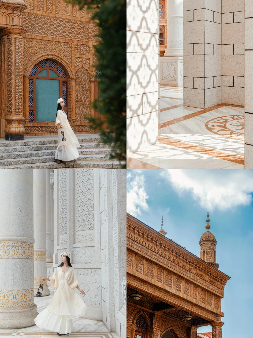 一金一白的两座阿拉伯式建筑,号称国内版的「小伊斯坦布尔」。午后,阳光斜穿过雕花窗棂,光影便在砖石上写诗。