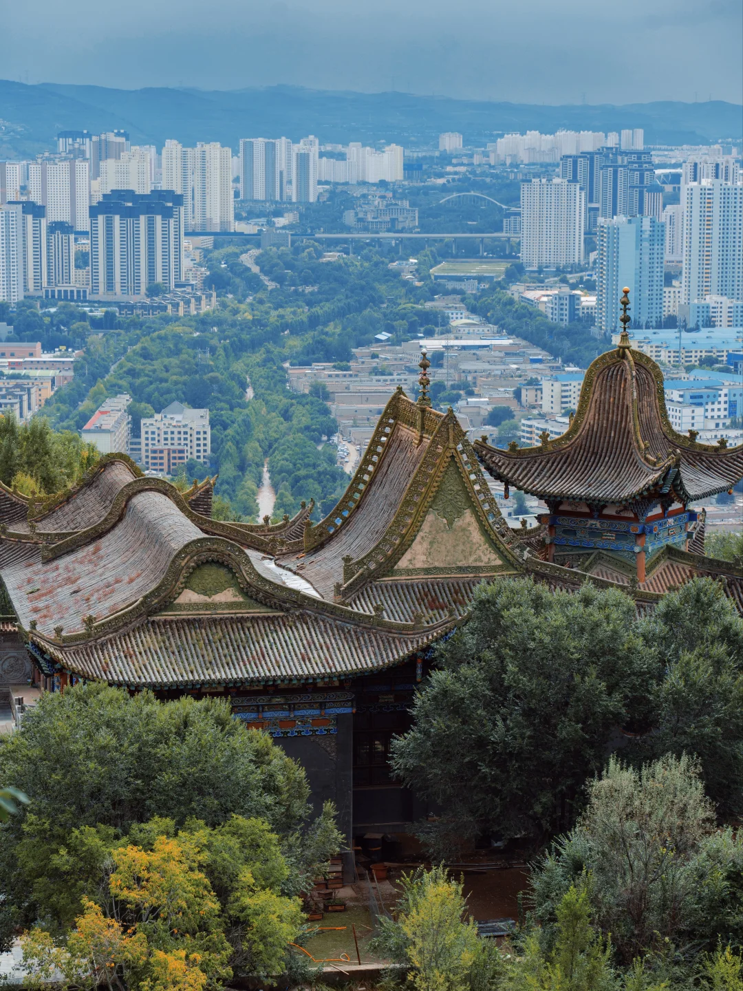 登上凤凰台,不仅能俯瞰全城,还能解锁「一半寺庙一半CBD」的魔幻西宁。