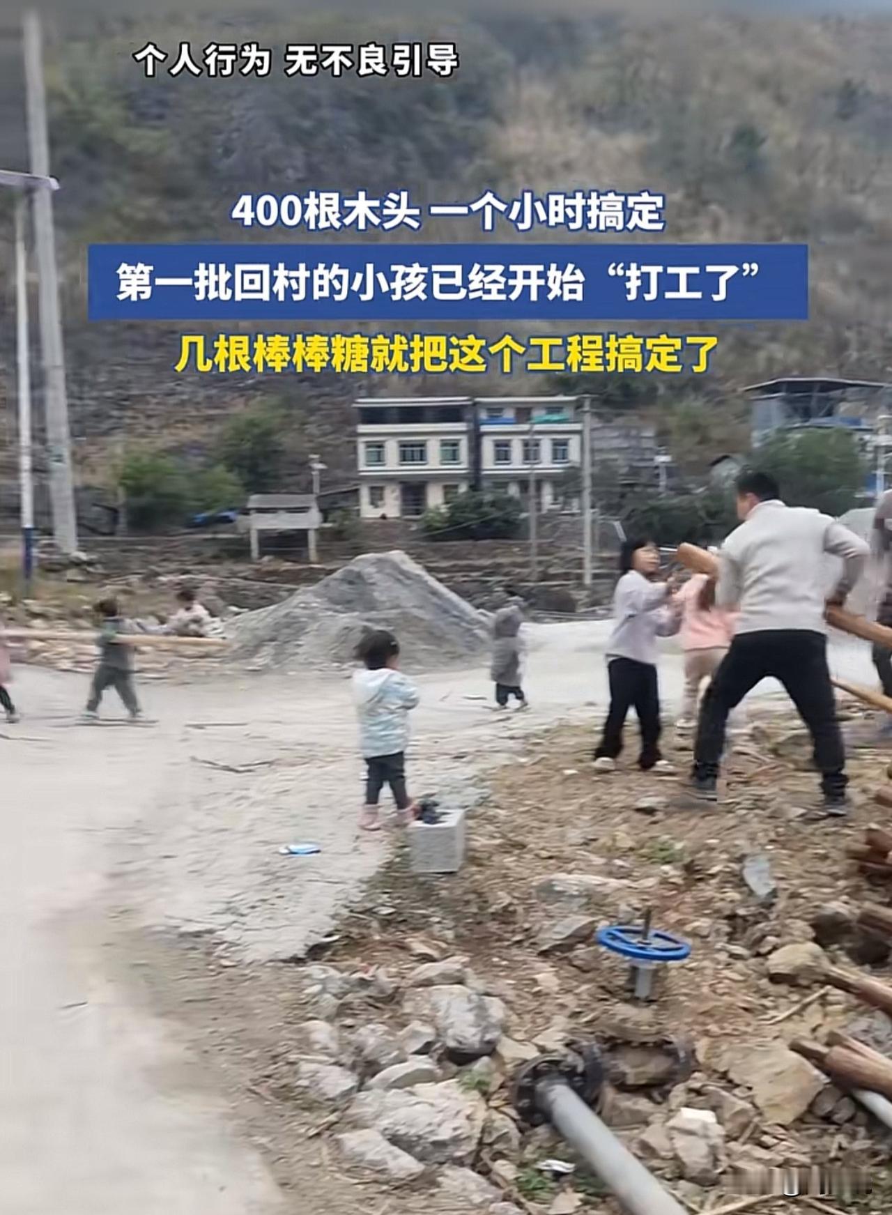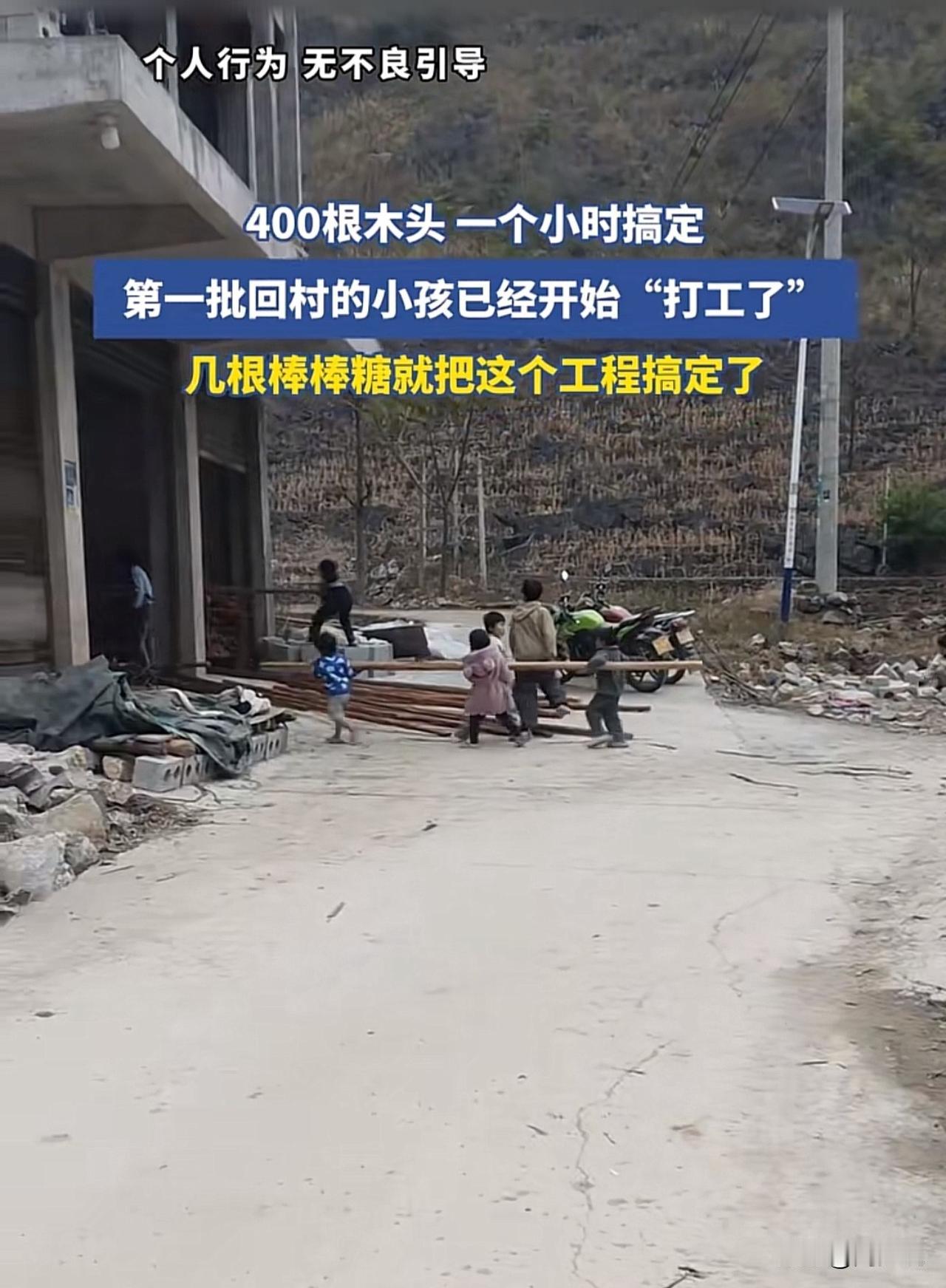 “笑哭!”刷到一个短视频,第一批回村的小孩已经开始“打工了”,400根木头一个小时就搞定了,而这么大工程量只需几根棒棒糖就搞定了。 看到这个视频,周少不得不说真笑哭了,抛去雇佣“童工”这层关系,周少觉得这种方式还挺好的,现在不少孩子被电子产品包围,提不起劲做事,很多孩子都变懒了,这种激发兴趣的方式值得认可,总比天天在家刷手机强。 当然,这种也要注意孩子的身体安全,几个小朋友抬一根木头,视频中看得出来这群小朋友还是挺开心的。大家觉得怎么样?#寻美三湘# #长沙新朋友#