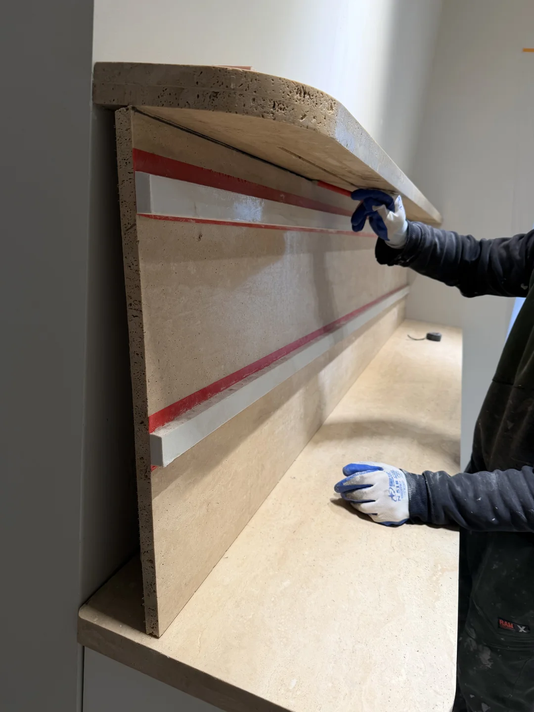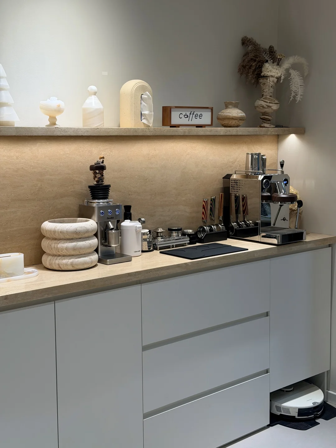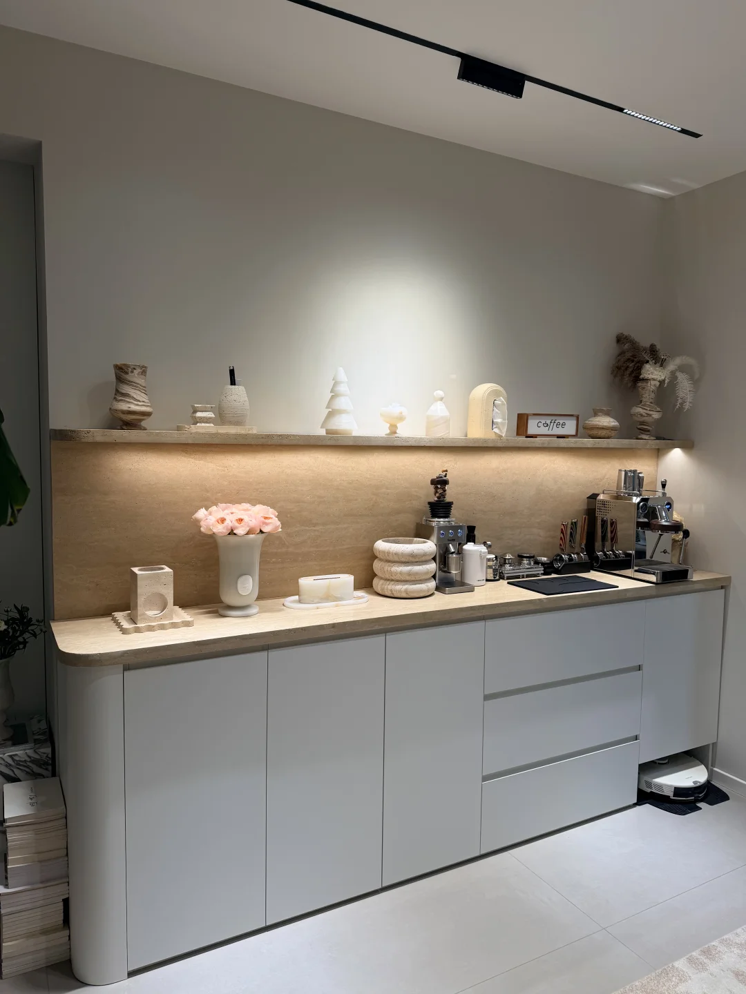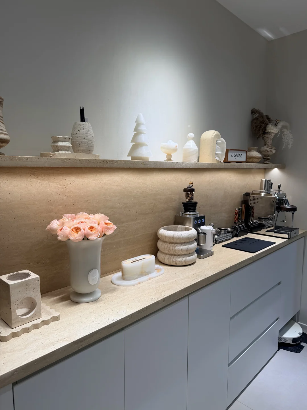 有生活气息的家 家居作者扶持计划 洞石 洞石餐边柜 换个角度看我家 餐边柜 整墙餐边柜 天然大理石餐边柜 大理石安装 小户型餐边柜