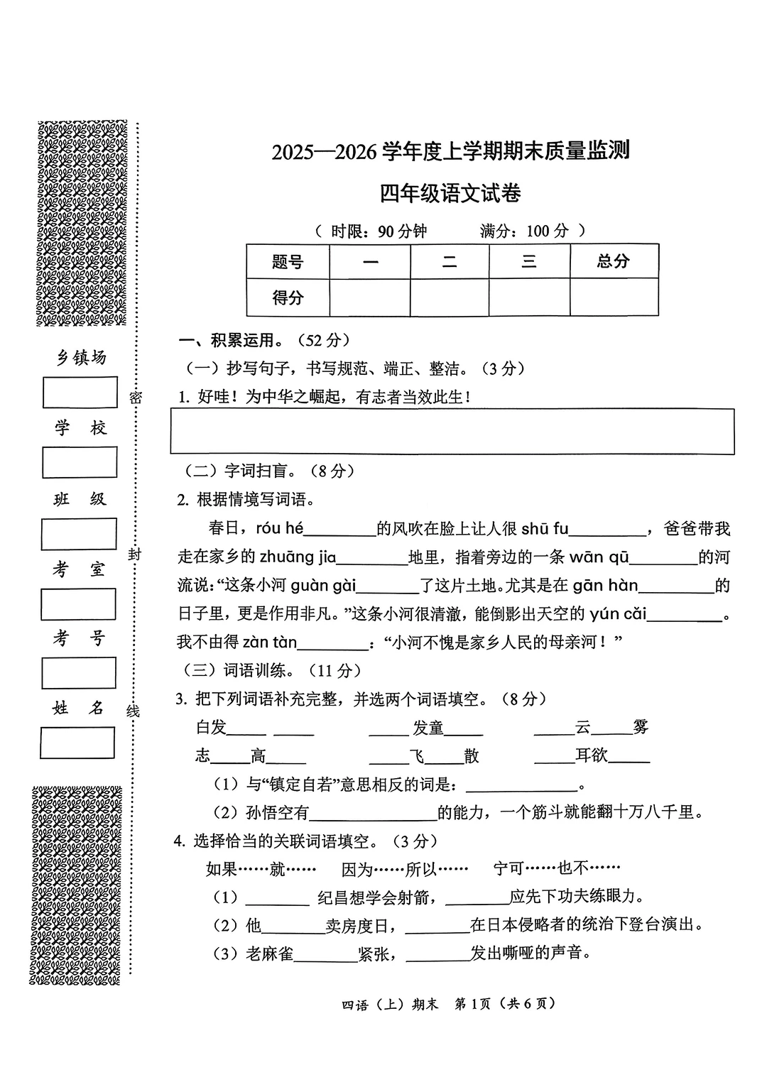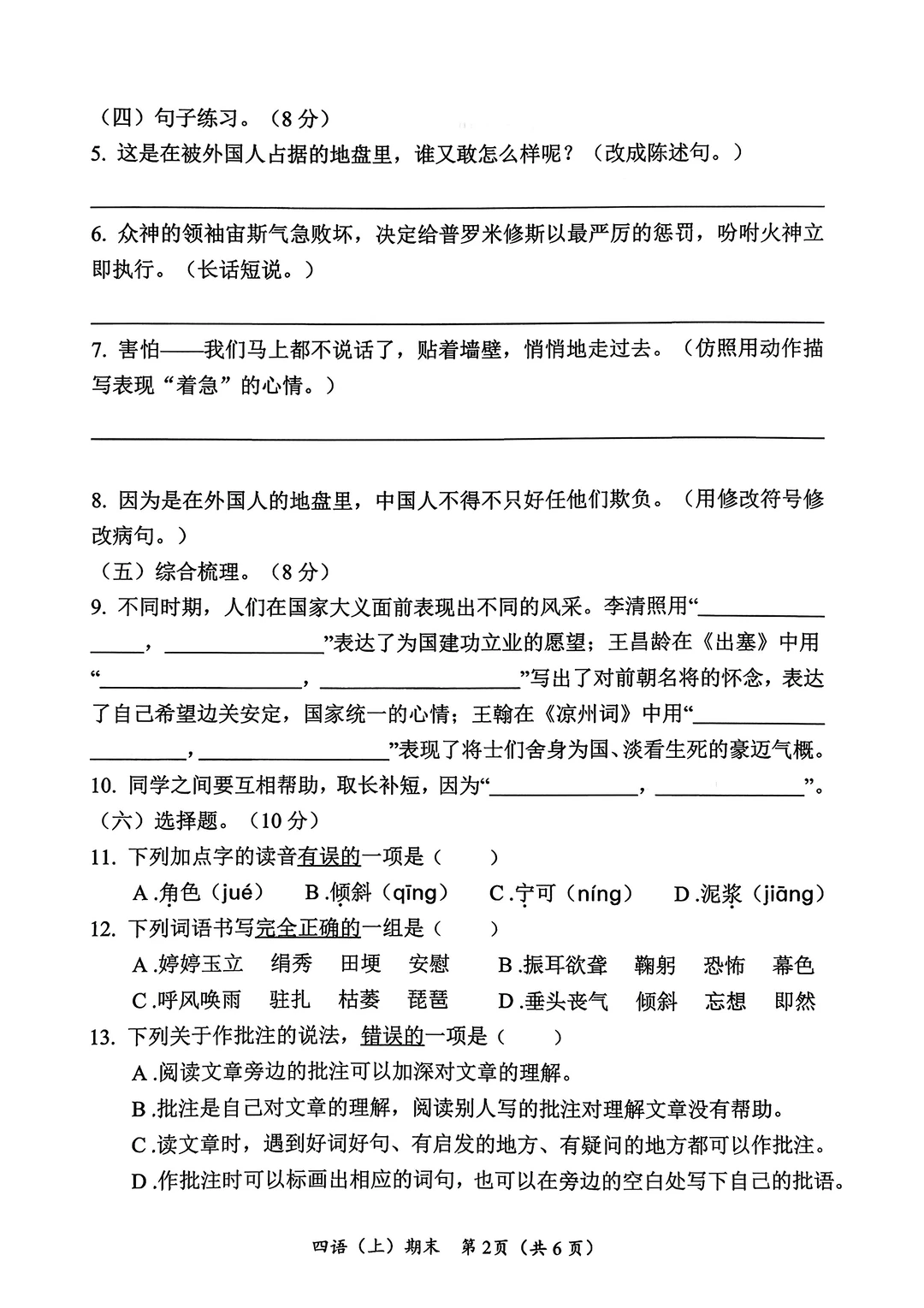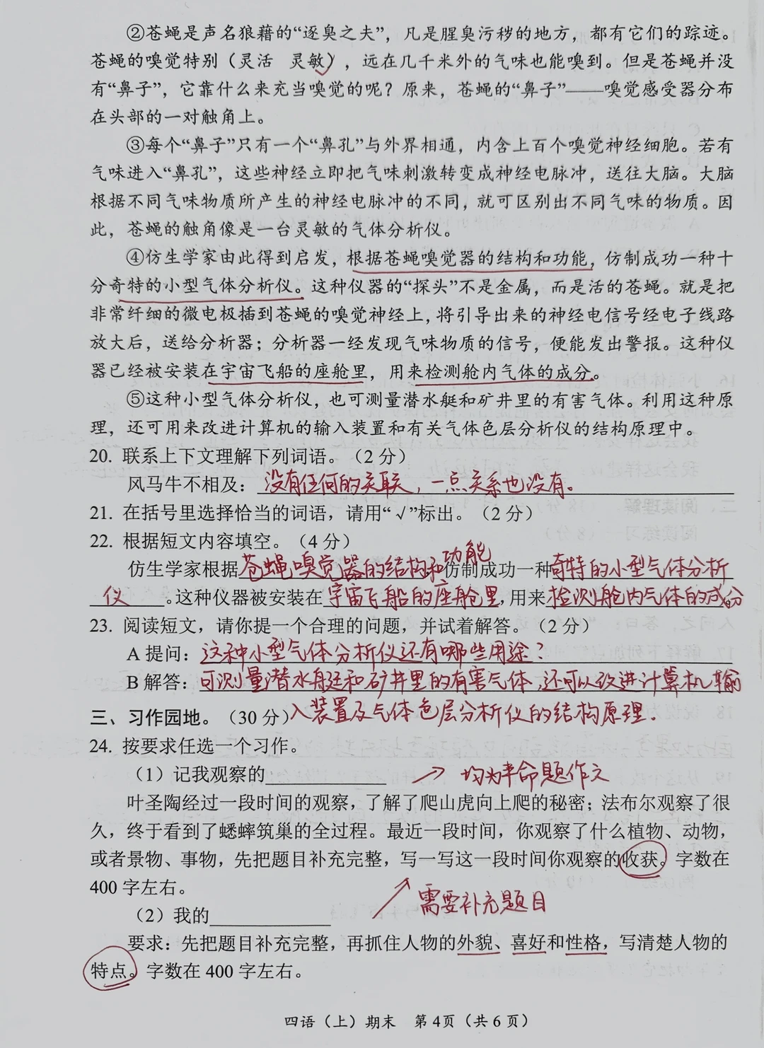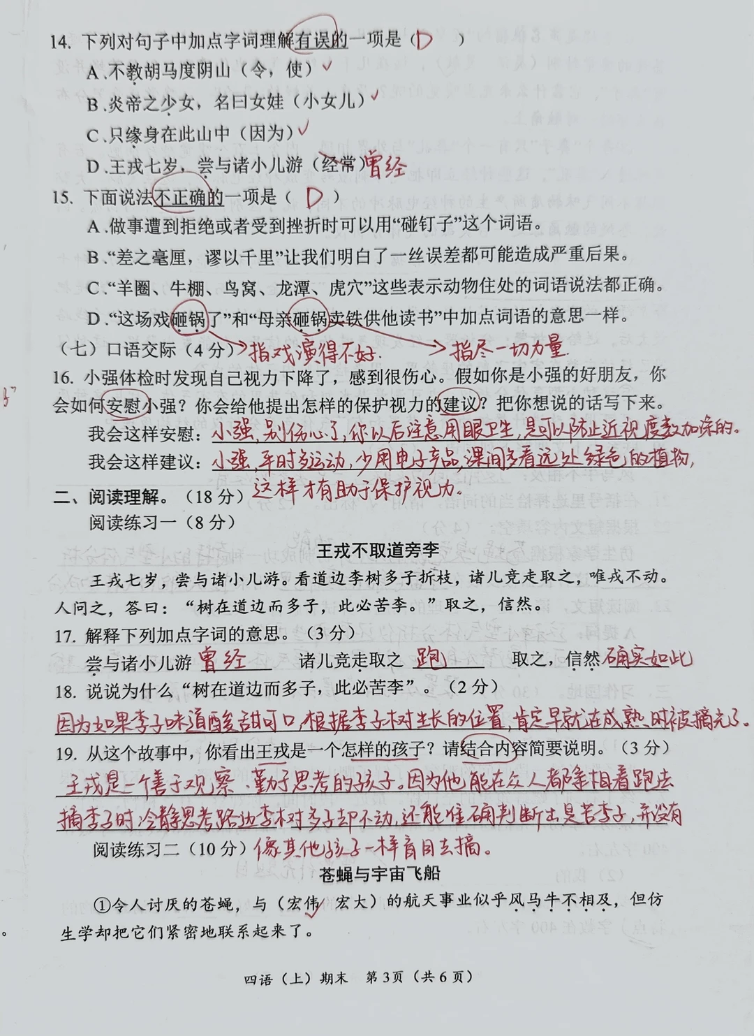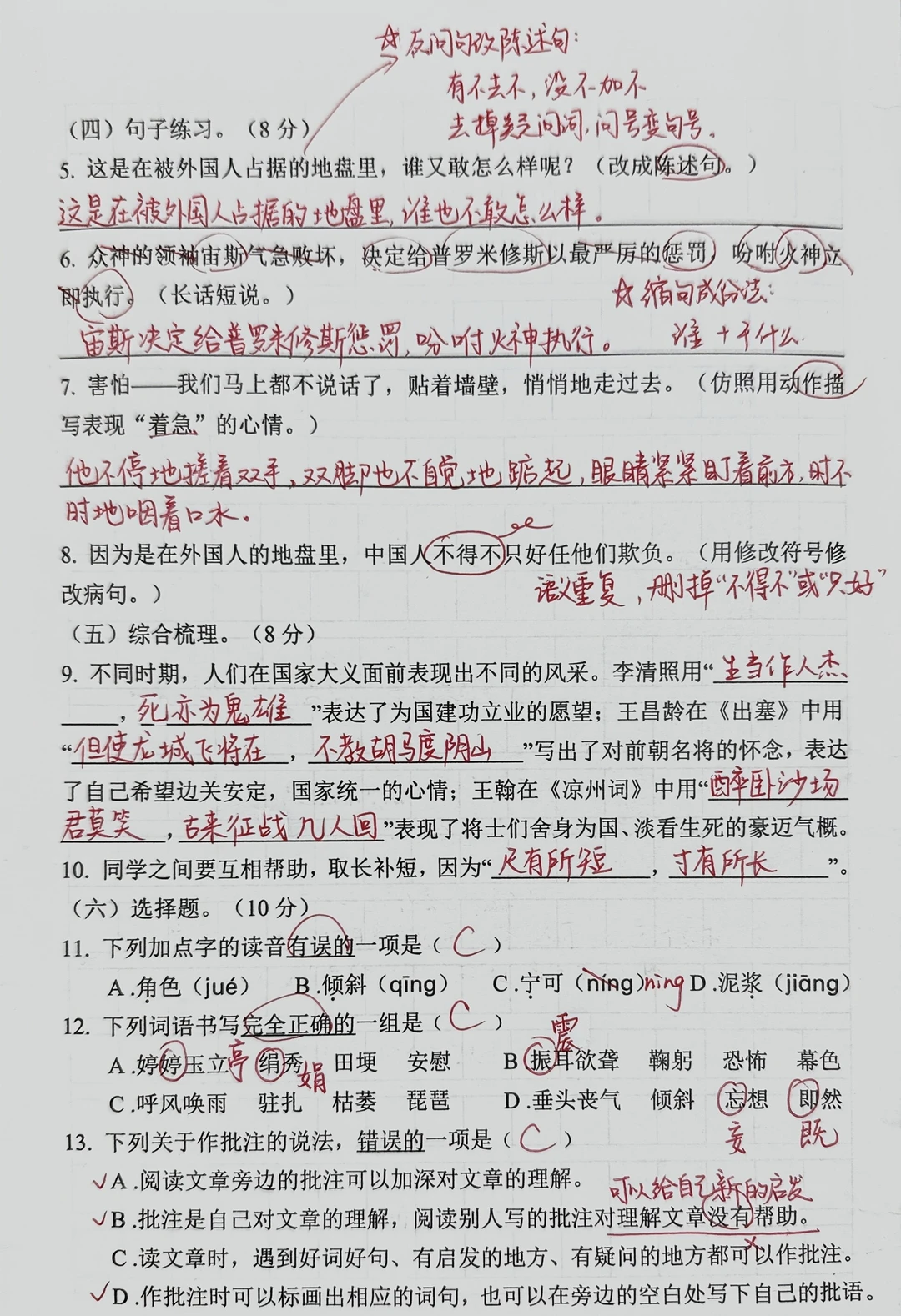 📍坐标湖北 👉试卷整体偏基础,句式主要考察了陈述句与反问句、缩句、仿写和修改病句。 【阅读理解】考了一篇课内的文言文《王戎不取道旁李》,一篇课外的【科技说明文】,主要考察学生对关键信息的提取能力,以及对文章的提问。 这张试卷做下来应该能让娃们膨胀不少吧[doge]能开开心心过个好年了![偷笑R] (需要其他年级真题的宝子可以进左下方群聊哦!)