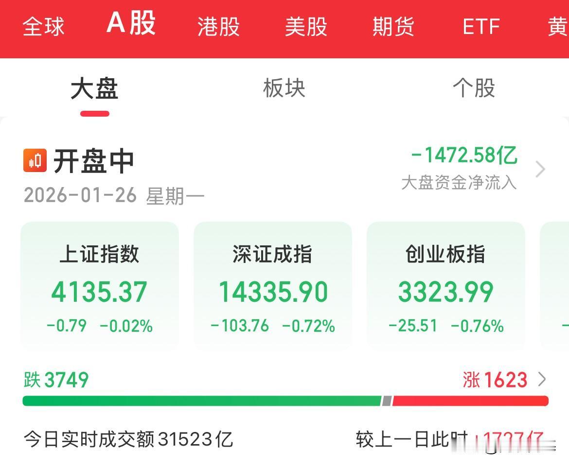 内资疯狂卖出1400亿,贵金属、有色金属全线大涨,商业航天、半导体设备遭血洗,存储芯片、光刻机跌幅3%,指数微跌,个股跌幅稀里哗啦的 内资疯狂卖出,成交量放大,商业航天、半导体设备一波血洗,周五大涨商业航天直接一波流埋了一票人, 果然是那一句话,商业航天会惩罚每一个人,在场里面的难受,在场外也难受,剧烈震荡,周末一片利好,只为了出货, 贵金属、有色金属压不住,也压不了的集体暴涨,毕竟人家跟踪外围的,还操控不了,有单调贵金属、有色金属的没?