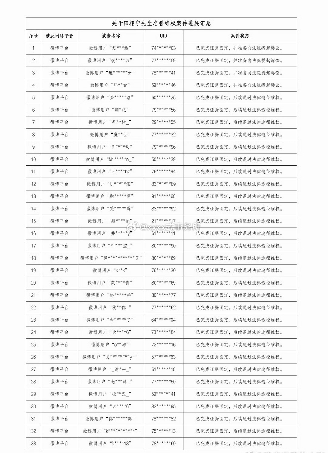 田栩宁发布告嘿名单