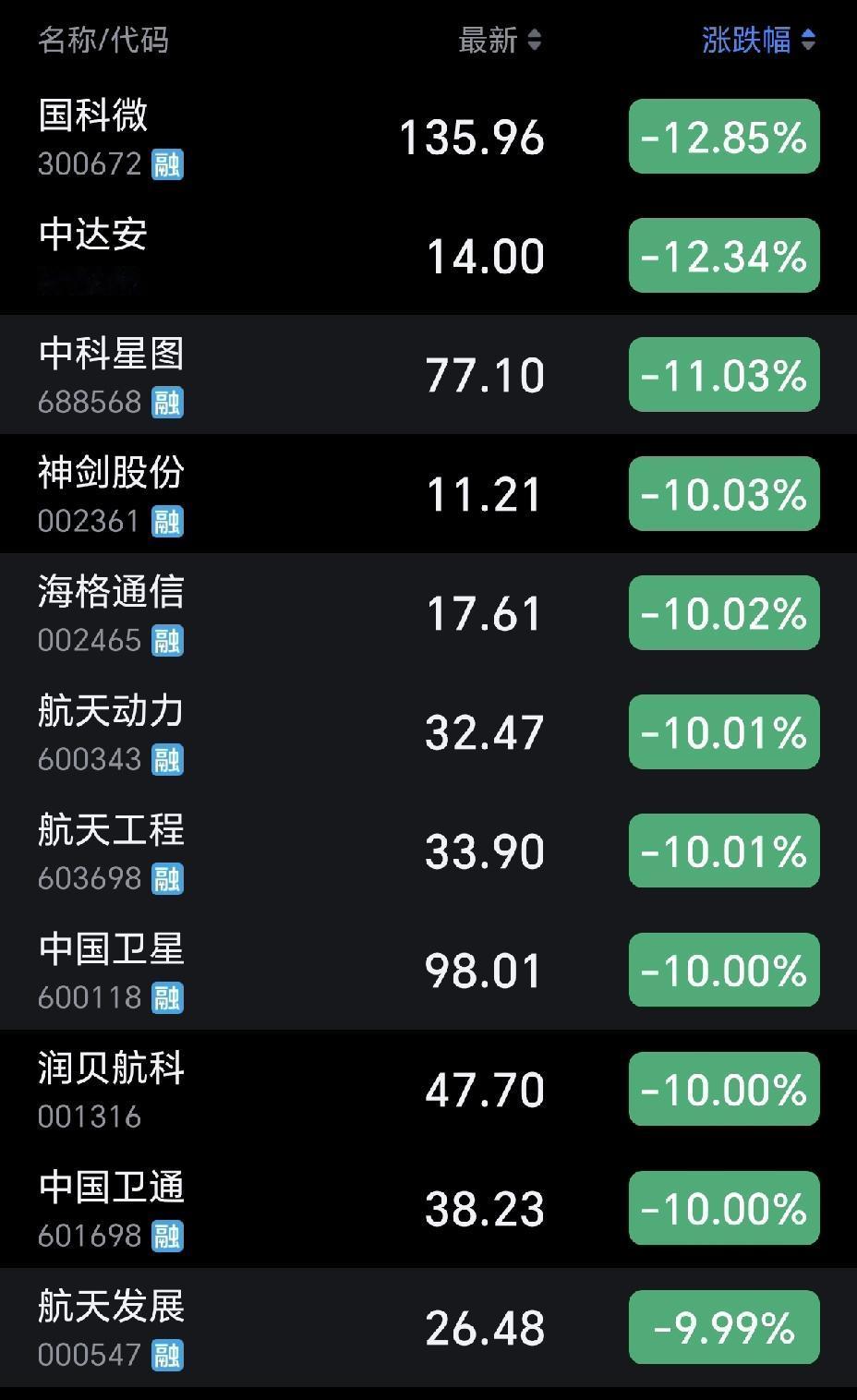航天行情仍在,别被赶下车! 今天的航天股一片哀嚎遍野,很多人都在担心航天还有没有行情? 今天航天股之所以会大跌,和文昌那边取消了二月的发射任务,还有航天行情过热有关。 大家有没有发现,现在大盘居高不下,股民的热情,一直降不下来。而很大的热情,就是来源于航天。 被套的股民,先不要急着割肉,航天的行情一直在,这时候需要耐得住寂寞,能等待,航天行情迟早会起来。 如果你等待不了,只做短线的,只能割肉离场。这波下跌就是打击做短线的,对于长线的股民而言,根本不怕。