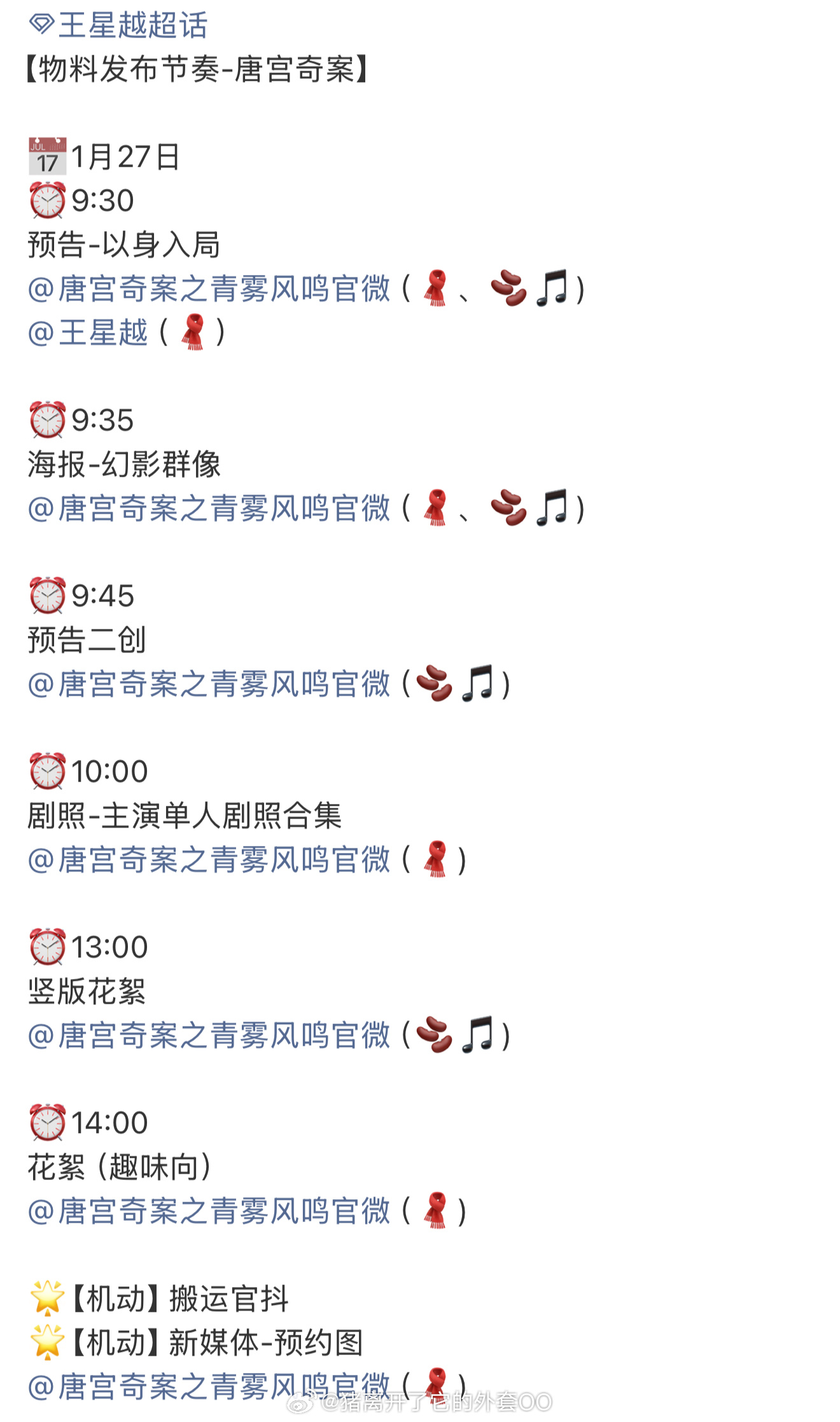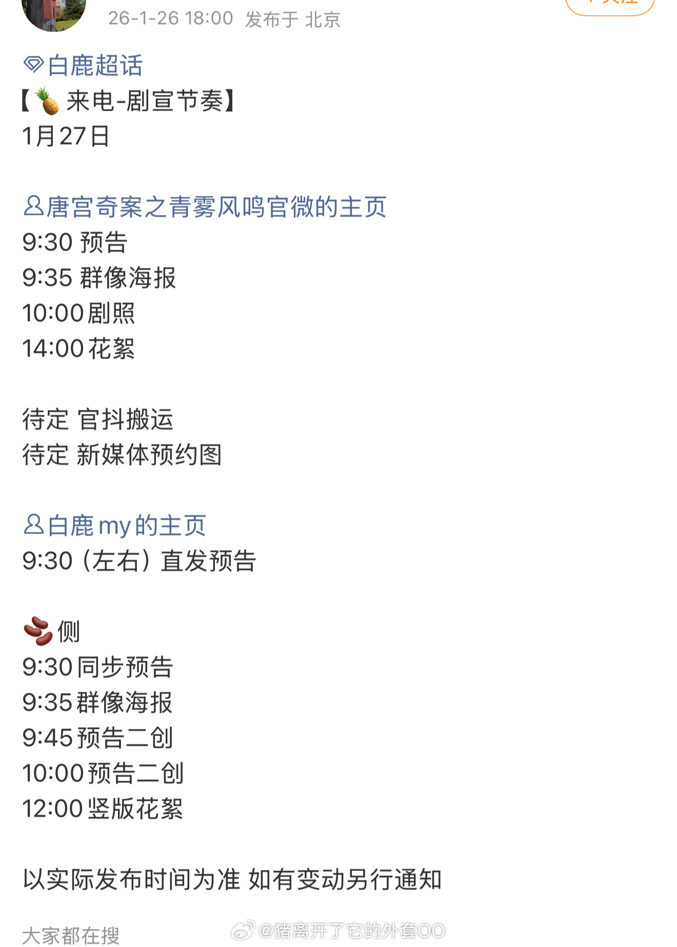 白鹿王星越《唐宫奇案》明日正式预热,预告发布节奏!!