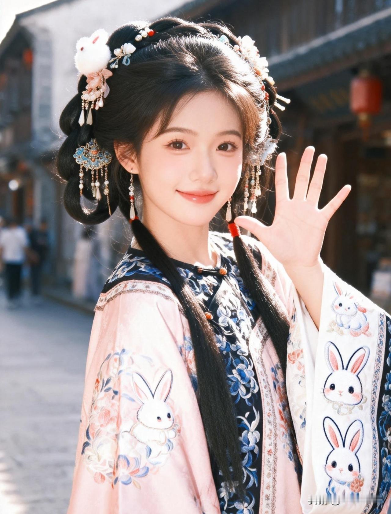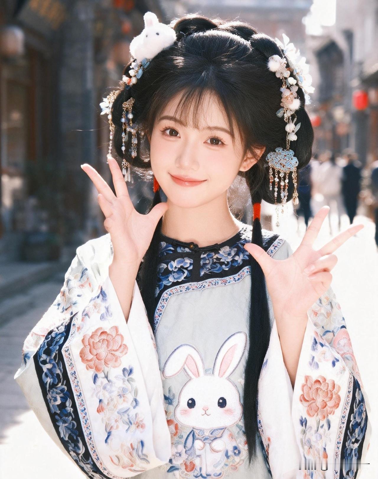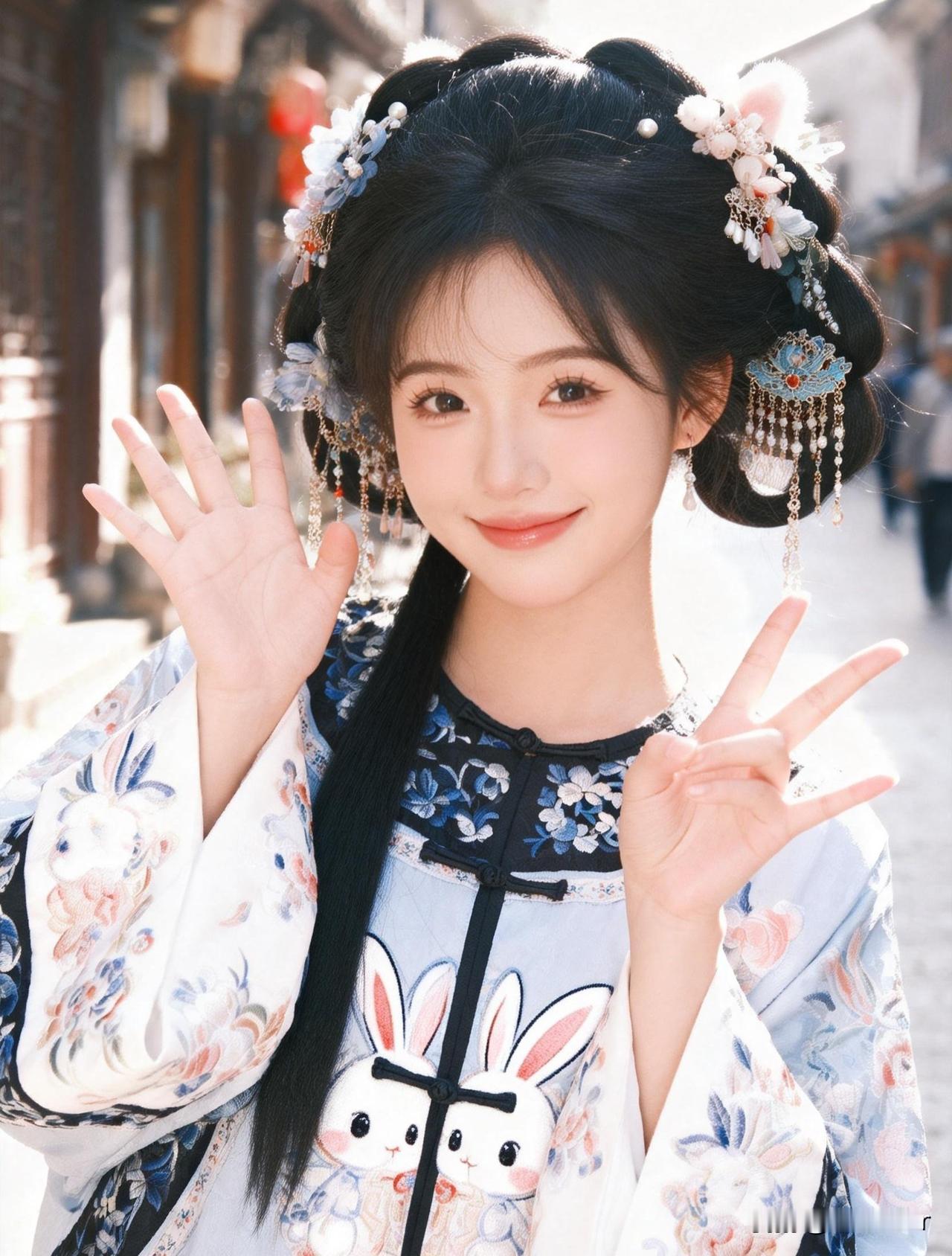 古风石阶叠翠影,元气少女笑靥明✨眉眼弯弯撞进风里,满是甜津津的青春气。林间粉漾