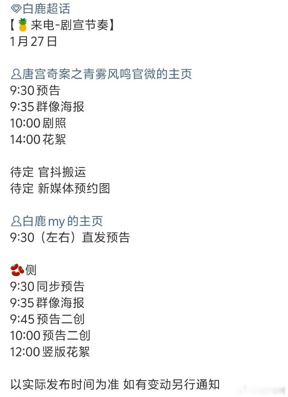 白鹿王星越《唐宫奇案》胎动了,明天好多物料