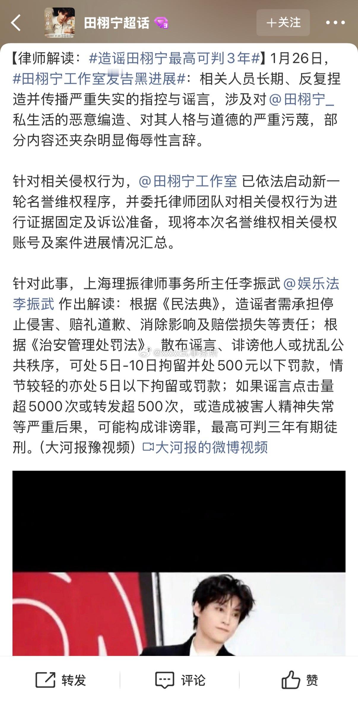 田栩宁这次力度好大,最高可pan三年田栩宁工作室发告黑进展