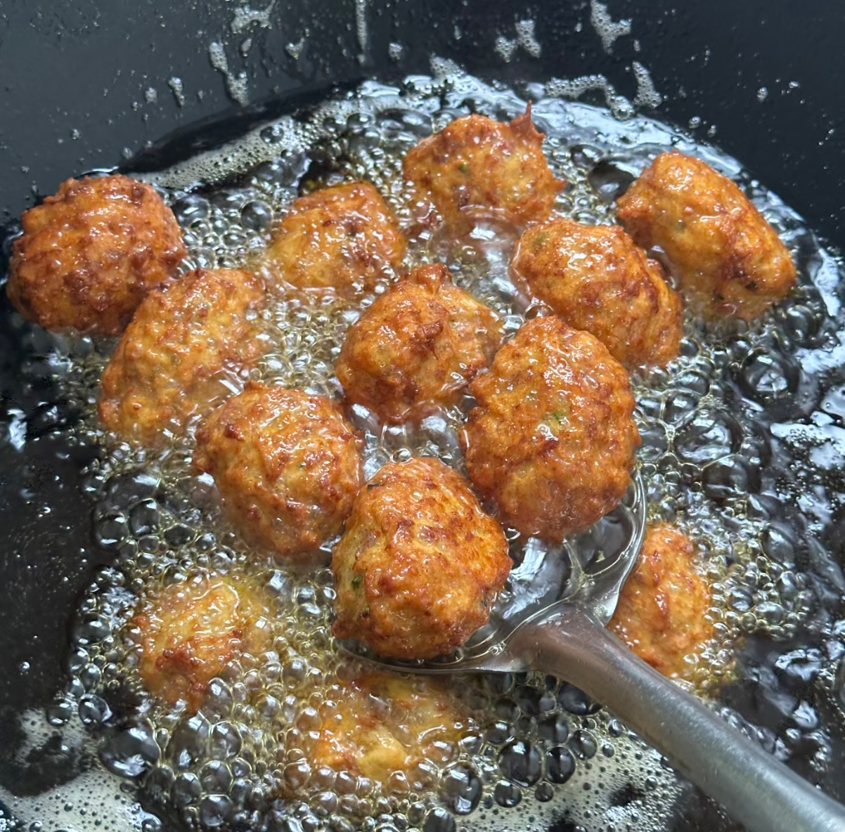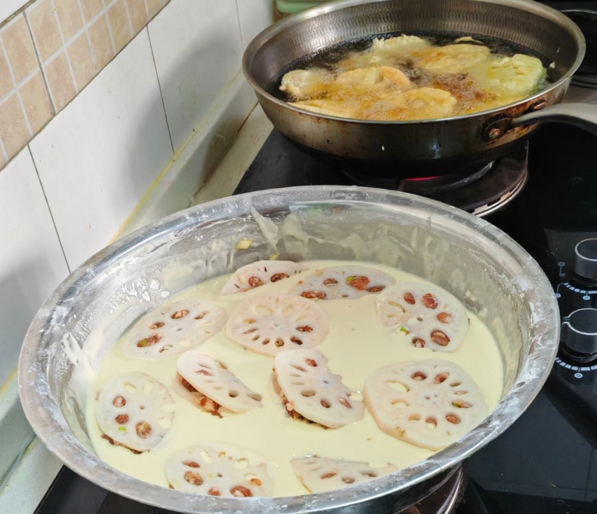 炸耦合是山东炸货的灵魂,韭菜肉馅裹上薄面糊,入锅炸至金黄酥脆,外酥里嫩咬开爆汁,咸香入味越嚼越香,摆上桌秒空盘!现炸小酥肉选肥瘦相间的五花肉,裹粉炸得外焦里嫩,撒上椒盐直接吃,或是炖进汤里,香而不腻,大人小孩都爱啃。炸肉丸更是团团圆圆的象征,鲜肉剁馅调味揉成圆子,炸至金黄紧实,一口一个弹牙鲜香,年夜饭的桌上必有它,讨个团团圆圆的好彩头!腊月里的山东厨房,油锅滋滋作响,耦合、小酥肉、肉丸轮番上阵,金黄的炸货堆成小山,这是独属于山东的年味浪漫。家乡年味大比拼,咱山东的炸货三绝,凭实力拿捏新年的味蕾,一口炸货一口年,满是团圆与香气。下面就把家常做法详细拆解,教你复刻家乡味。一、炸耦合:外酥里嫩,爆汁鲜香食材准备(10个量)- 主料:莲藕1节(选脆嫩款,直径5-6cm)、猪前腿肉200g(肥瘦3:7,口感不柴)、韭菜50g- 腌肉料:生抽10ml、蚝油5ml、料酒5ml、姜末3g、葱花5g、盐2g、白胡椒粉1g、香油3ml、淀粉5g- 面糊料:中筋面粉100g、玉米淀粉30g、鸡蛋1个、清水150ml、盐1g、食用油5ml(防粘增香)详细步骤1. 处理食材:莲藕去皮,切成0.5cm厚的连刀片(第一刀不切断,第二刀切断,形成夹子状),放入清水中浸泡,加少许白醋防止氧化变黑;韭菜洗净切碎,猪肉剁成肉馅(手工剁比机器绞的更抱团)。2. 调制肉馅:肉馅中加入所有腌肉料,顺着一个方向搅拌至黏稠,最后加入韭菜碎拌匀,静置10分钟入味(韭菜后放避免出水)。3. 调面糊:面粉+玉米淀粉+盐混合,打入鸡蛋,分次加清水搅拌,至“能挂薄糊、滴落成线”的状态,最后加食用油搅匀,静置5分钟让面糊更细腻。4. 夹馅挂糊:取出莲藕片,用厨房纸吸干水分,在两片之间塞入适量肉馅(不宜过多,避免炸时破裂),轻轻按压紧实;将夹好馅的耦合放入面糊中,均匀裹上一层薄糊(糊太厚会影响酥脆感)。5. 炸制出锅:锅中倒宽油,烧至六成热(筷子放入冒密集小泡),放入耦合,中火炸3-4分钟,至表面金黄定型,捞出控油;待油温升至八成热(油面微微冒烟),复炸1分钟,逼出多余油脂,口感更酥脆,捞出沥油即可。二、小酥肉:外焦里嫩,越啃越香食材准备(3-4人份)- 主料:猪五花肉/里脊肉300g(五花肉更香,里脊肉更嫩,按需选择)- 腌肉料:生抽15ml、料酒10ml、花椒粉2g、姜片5片、葱段5段、盐2g、白糖3g(提鲜)- 裹粉料:中筋面粉80g、玉米淀粉50g、鸡蛋1个、清水60ml、花椒粒10粒(可选,增麻香)详细步骤1. 切肉腌制:猪肉切成0.8cm宽、5cm长的条,放入碗中,加入所有腌肉料,用手抓匀,腌制30分钟(时间越长越入味,冷藏腌制更佳)。2. 调裹粉料:面粉+玉米淀粉混合,打入鸡蛋,分次加清水,搅拌成“浓稠能挂住肉条”的糊状(太稀易脱糊,太稠口感硬),最后加入花椒粒搅匀。3. 挂糊炸制:腌好的肉条挑出葱姜,逐条放入裹粉料中,均匀裹上一层粉糊;锅中倒油烧至六成热,放入肉条,分散摆放避免粘连,中火炸4-5分钟,至表面金黄,捞出控油。4. 复炸增香:油温升至八成热,将炸好的小酥肉全部倒入锅中,复炸30秒,至表面酥脆金黄,捞出沥油,可根据喜好撒上椒盐或辣椒粉。三、炸肉丸:弹牙紧实,团圆寓意食材准备(20个左右)- 主料:猪前腿肉400g(肥瘦4:6,更油润)、莲藕100g(或馒头2个,增加蓬松感)、鸡蛋1个、淀粉30g- 调味料:生抽15ml、蚝油10ml、料酒10ml、姜末5g、葱花10g、盐3g、白胡椒粉1g、十三香1g、香油5ml、清水20ml详细步骤1. 处理食材:猪肉剁成细腻肉馅,莲藕去皮切成极细的碎末(或馒头泡软后挤干水分,捏成碎末),放入肉馅中。2. 调制肉馅:加入鸡蛋、淀粉和所有调味料,顺着一个方向用力搅拌5分钟,至肉馅黏稠上劲,期间分次加清水(每次10ml),让肉馅更湿润弹牙,静置15分钟。3. 搓制肉丸:手上抹少许食用油(防粘),取适量肉馅(约20g),放在手心,反复揉搓成光滑的圆形丸子,放入盘中备用(全部搓好后再炸,效率更高)。4. 炸制成型:锅中倒油烧至五成热(筷子放入冒细小气泡),放入肉丸,小火慢炸5分钟,至肉丸定型、表面微黄,捞出控油。5. 复炸上色:油温升至七成热,将肉丸倒入锅中,中火炸2-3分钟,至表面金黄紧实,捞出沥油,可直接吃或炖菜、做汤。四、山东炸货关键技巧(避坑指南)1. 油温判断:六成热(160℃):筷子冒泡;八成热(180℃):油面冒烟,复炸必须高温短时间,才能外酥里嫩。2. 面糊/裹粉比例:耦合面糊“面粉:玉米淀粉=3:1”,小酥肉裹粉“面粉:玉米淀粉=2:1”,肉丸淀粉用量不宜过多,否则口感硬。3. 食材选择:猪肉选前腿肉或五花肉,肥瘦比例适中,避免全瘦柴、全肥腻;莲藕选脆嫩款,炸后更爽口。4. 储存方法:炸好的耦合、小酥肉、肉丸放凉后,装入密封袋,冷藏可放3天,冷冻可放1个月,吃时复炸1分钟即可恢复酥脆。这三道炸货,是山东过年的“硬菜担当”,油锅滋滋作响,金黄的炸货堆成小山,不仅是味蕾的满足,更是团圆的象征。跟着教程做,让你的年夜饭满是鲁地年味,一口下去,全是家乡的温暖与香甜。按照这个教程做,炸货三绝既能保持外酥里嫩的口感,又能还原山东老辈的地道风味。如果想调整口味(比如减辣、增香),或者需要适配不同人数的食材比例,都可以告诉我,我帮你灵活调整~ 炸好后搭配蒜泥、糖醋汁或椒盐,风味更丰富哦。2026家乡年 我在山东过大年家乡年味大赏我的拿手年夜菜美食