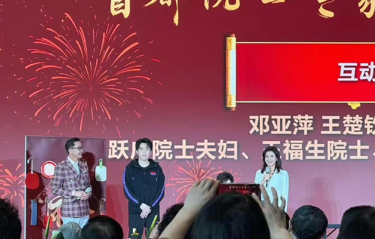 王楚钦今晚与邓亚萍一起出席首都院士专家新春联谊会活动。 现场与邓亚萍前辈一起上台在主持人带领下为观众送上新年祝福。 活动并不会对外公开,但是王楚钦还是妆造齐全,非常重视。 作为北京培养的代表性运动员,可以被更多北京其他领域精英认识也是荣幸!